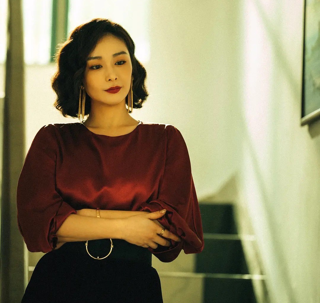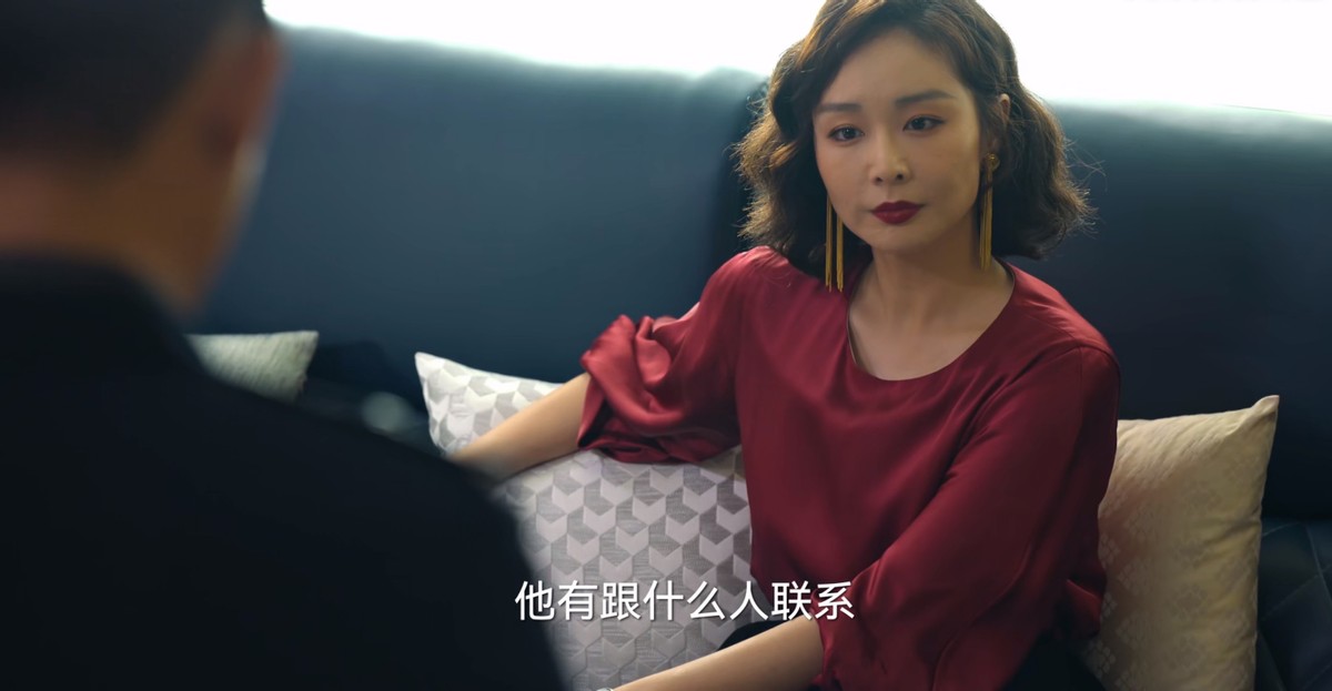 高叶从出场的第一个镜头开始,就带着大家入了戏。红配黑的服饰,再加上长长的流苏耳钉以及港风气质十足的齐肩短发造型,再配上烈焰红唇,不愧是能够被大佬看中的女人。
