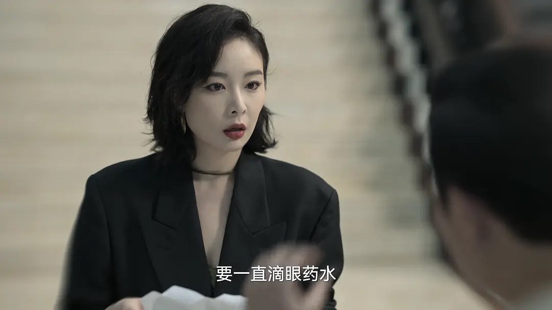她给人的第一感受就是气场凌厉,在背光看不清脸的情况下,站在楼梯上抱着胳膊俯视面前的两位警察。一副傲气的姿态,刚刚死了丈夫,还不把警察放在眼里,这个女人还没开口就知道,指定是有点东西。