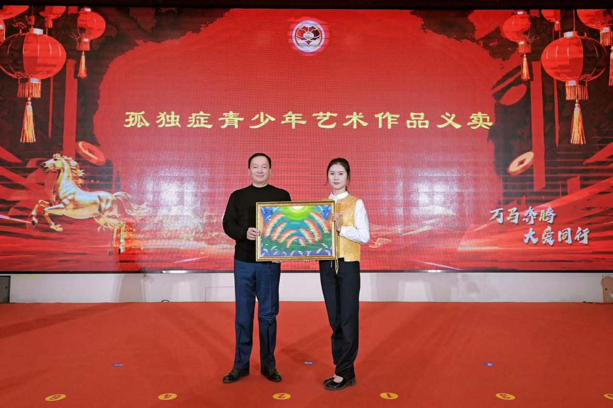 联谊会上,还进行了孤独症青少年绘画作品展示,爱心企业家及爱心人士竞相收藏,以此表达孤独症孩子们的关心关爱。