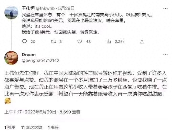 科普一下,这个王伟恒就是美国润人“甜甜圈真好吃”的正主。现在抖音有些人搬运他们在外网的生活视频,赚得比他们自己在美国打黑工赚得还多。