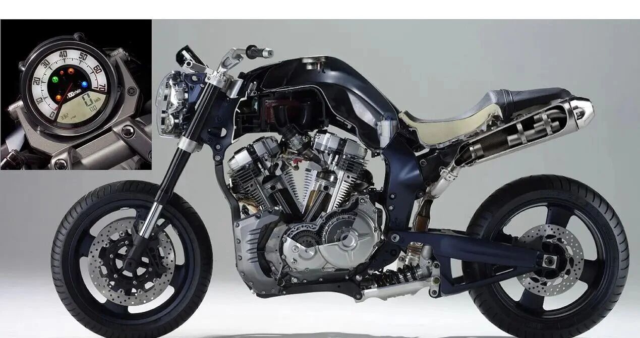 重点整理 开发初衷并非性能输出,而是追求「感官上的冲击」与「引擎跳动的生命感」。 搭载 1,670cc OHV V 型双缸引擎,缸径行程为 97.0 x 113.0 mm,纯粹的长行程扭力机器。 配备当时R1等级的倒立式前叉与辐射对四卡钳,制动与悬挂完全是公升级仿赛规格。 排气系统导入 EXUP 阀门技术,让低转速的排气声浪厚实且不散乱。 首创「零件即造型」设计风格,将机油箱、推杆套管、排气管饰盖化为视觉焦点。
