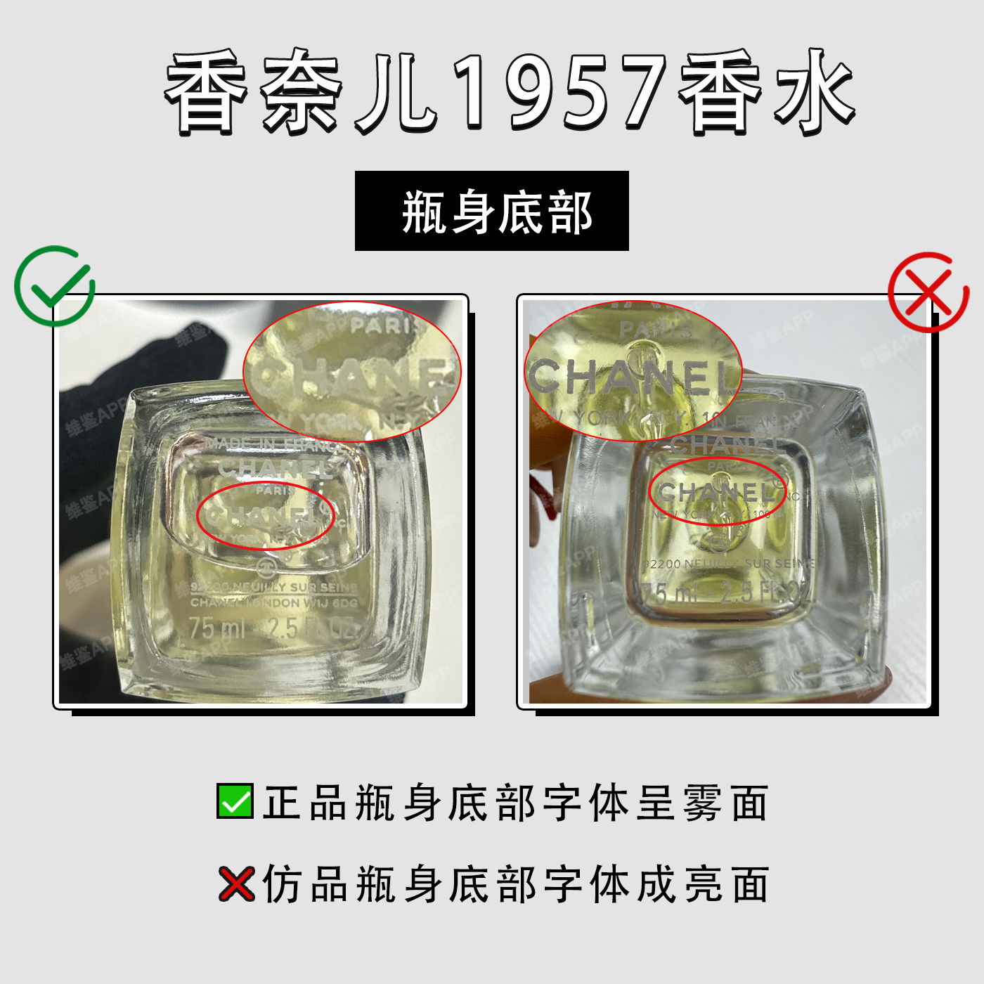 正品瓶身底部字体呈雾面
