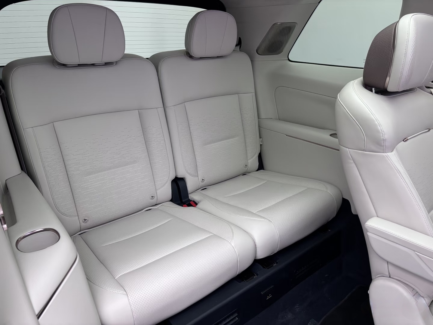 最直观的就是纯平地板,得益于SPA Evo架构,车内中央没有传统SUV的凸起,1.3米的小孩能在三排之间直立走动,第三排乘客上下车也不用跨来跨去,这点对家庭用户太友好了。所谓的“六座同权”也不是噱头,三排座椅宽度都接近1.1米,我身高1.8米,坐进第三排腿部还有充裕空间,轻松跷腿完全没问题,不像很多同级车型那样,第三排只能给小孩应急。