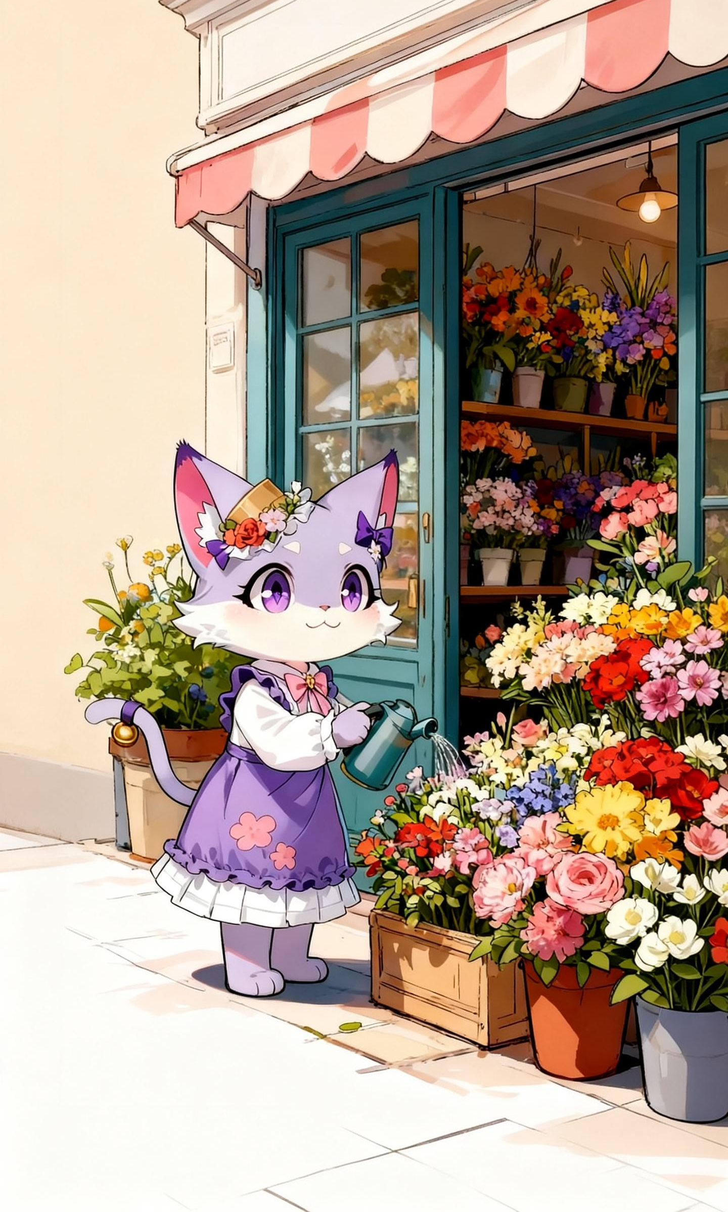 快节奏的生活里,总需要一些小美好来治愈疲惫。这张福运猫锦葵的花店主题壁纸,就凭借满屏的春日气息,成功俘获了不少人的心。阳光轻洒在整洁的石板路上,锦葵正站在花店前悉心浇花,头戴小花装饰、耳别紫色蝴蝶结,花漾紫裙衬得她愈发灵动。薄荷绿门窗搭配粉白条纹遮阳篷,店内暖黄灯光混着花香漫出,每一处细节都透着岁月静好。向来爱美的锦葵,把“魅力倍增”的祝福藏进了每一片花瓣的纹路里,愿你在这个春天,既能邂逅花开的浪漫,也能拥有自带高光的魅力,日子满是温柔与欢喜。