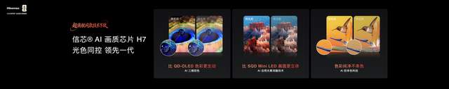 信芯AI画质芯片H7堪称电视界“5090级独显”,以108bits超高控色精度实现像素级光色同控,可独立调节三原色亮度与色彩,搭配AI防串色、自然光晕消除算法,毫秒级优化画面边界,实现“以色制光”的极致效果。其AI超清晰解构Pro技术可将低清信号逐帧重构为接近4K画质,AI人眼景深追焦技术强化主体细节,提升观影沉浸感。