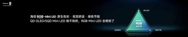海信E7S Pro的核心突破的是RGB-Mini LED技术落地,彻底解决了行业长期以来在画质、健康与能效之间的取舍难题。此前传统QD-Mini LED、SQD-Mini LED等技术采用单色背光,需通过量子点二次转换呈现色彩,易出现色彩冲淡、光晕明显、能耗偏高及有害蓝光超标等问题。而E7S Pro搭载玲珑真彩背光与信芯AI画质芯片H7双核心引擎,通过光源、算力、光学架构全链路重构,实现画质、能效与健康的三重提升。