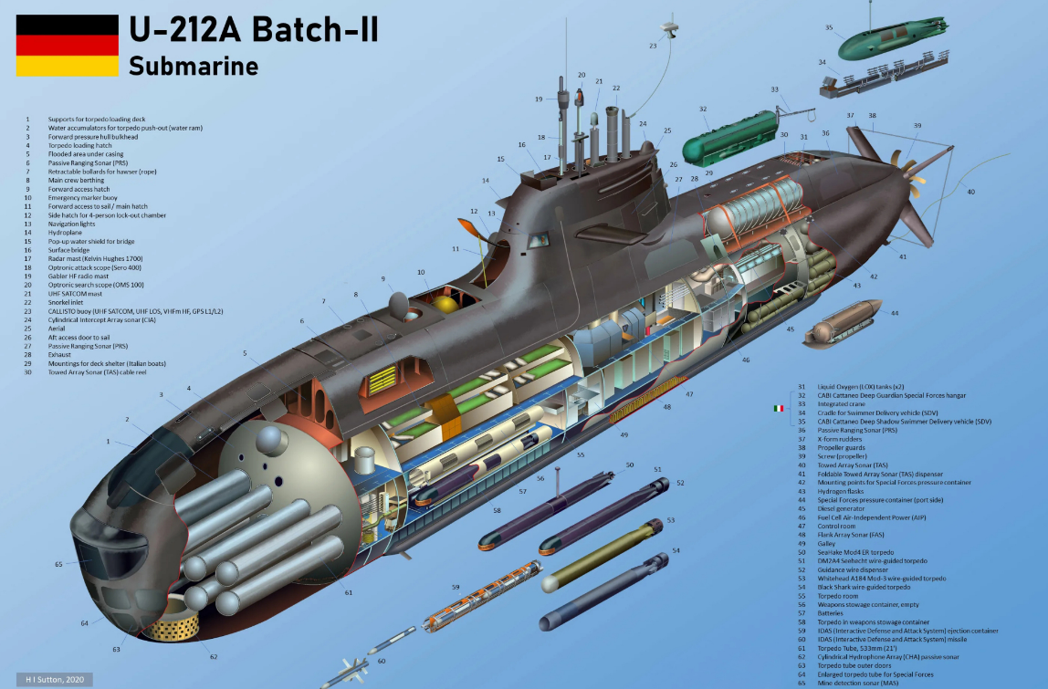 212A型潜艇是德国联邦国防军海军和意大利海军采用的常规动力攻击潜艇。它吸取了德国畅销全球的209型潜艇和TR 1700型潜艇的经验,具备先进的水下作战能力。该型潜艇配备先进的声纳套件、鱼雷发射管、自动火炮系统和防御装备,拥有出色的静音性能和水下机动性。电子设备方面,潜艇配备了先进的集成控制系统,具备高度集成和分布式控制能力。一旦印度获得212A型潜艇,将对中国海军构成较大威胁。