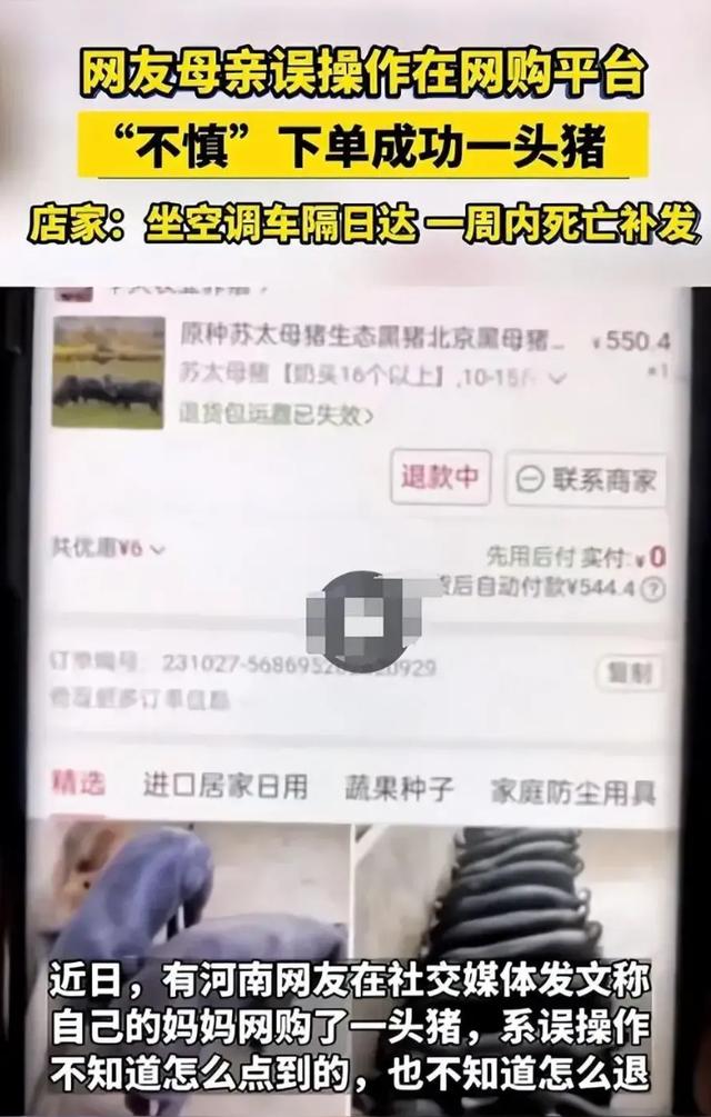 然而,最近出现了一个不同寻常的事件,一名女子声称她的母亲在网购平台上误下单购买了一头猪,而且不知道如何处理退货问题,这一事件在网络上引起了广泛的关注和讨论。