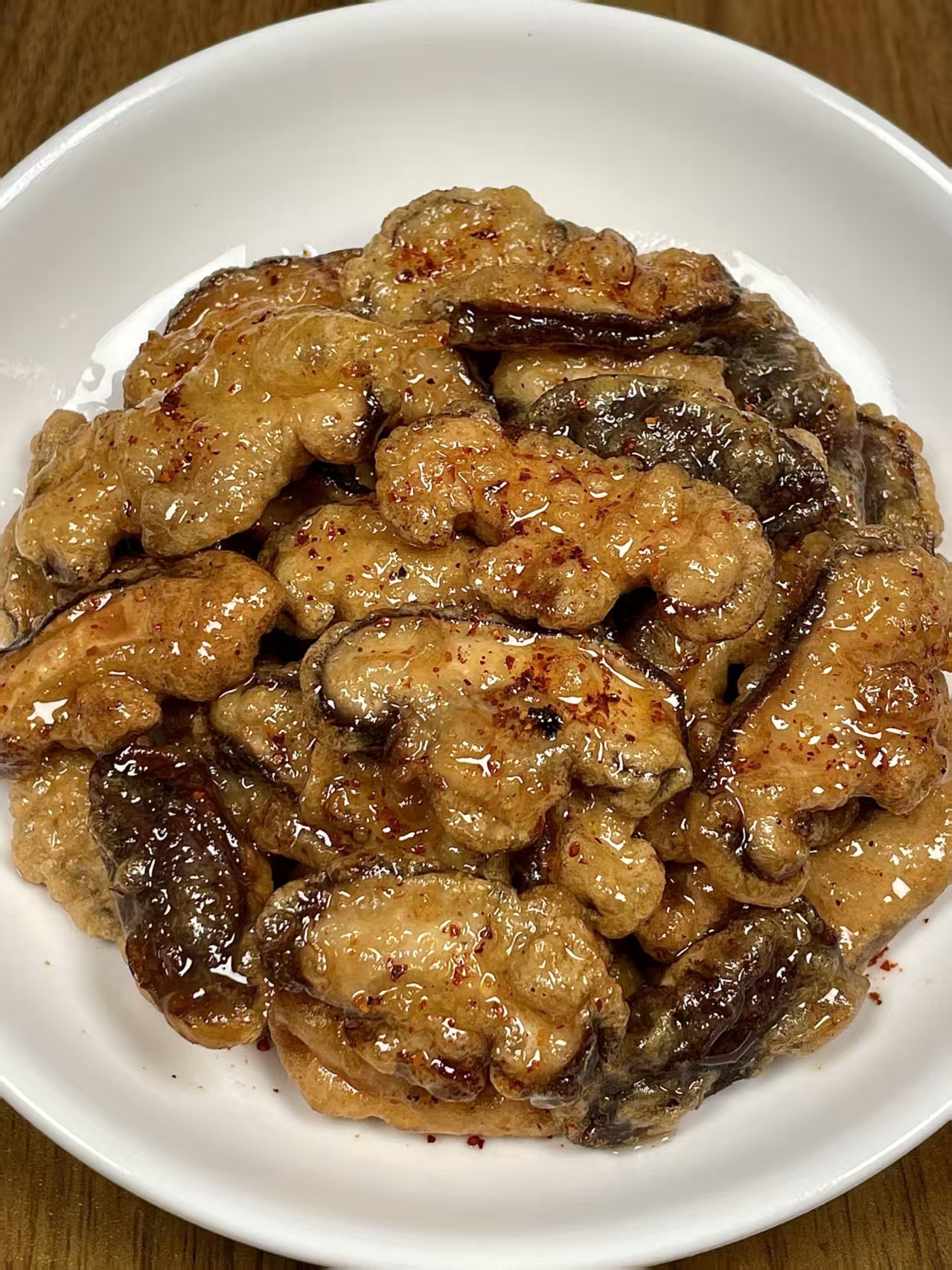 ✨ 贴秋膘小技巧:香菇选肉厚的,炸后更饱满;用中小火炸,避免外皮焦糊,内里没熟。