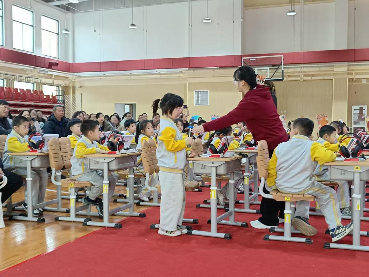 在由何曼老师执教的优谷朗读课上,孩子们清脆的声音如同一串串灵动的音符,在体育馆里跳跃。何曼老师通过优谷朗读设备进行朗读、角色扮演等多种形式,孩子们在平板上进行朗读,即时出朗读评测报告,老师可以清晰看到课堂上每一位同学的得分情况,与学生进行互动交流。各位校长不时为孩子们的精彩表现点赞!