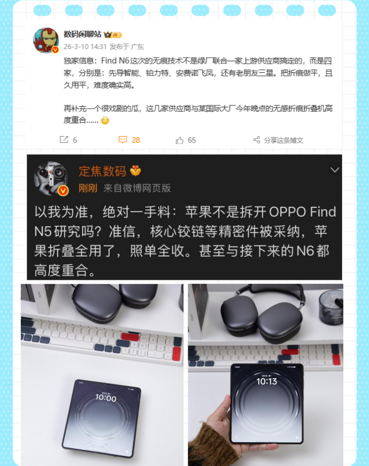 就刚刚有博主就爆料了将在3月17日发布的OPPO Find N6