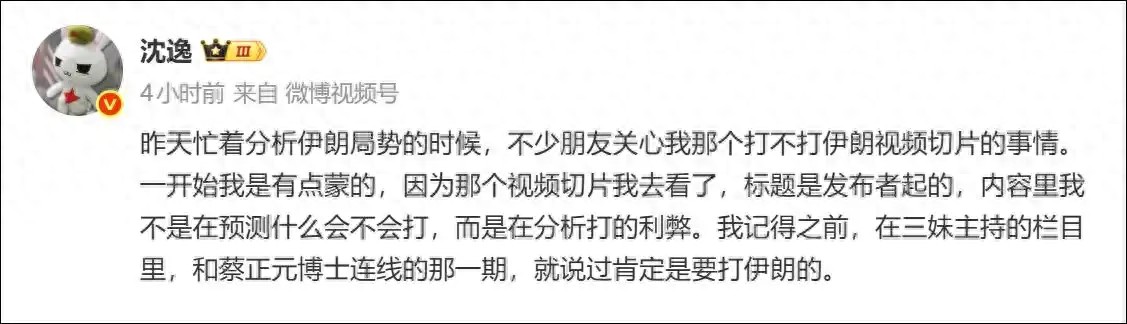 也正因为如此,对沈逸教授和金灿荣教授的军事分析,尤其是此次美以攻打伊朗的分析,要理性看待、客观评价,不要带着恶意去猜测,并由此进行人身攻击。