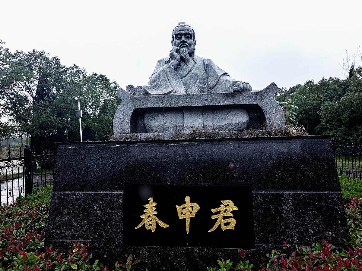 雨丝斜斜纷飞,打湿了石像的鬓角与衣袂,也悄悄模糊了时空的边界。恍惚间,杜牧“烈士思酬国士恩,春申谁与快冤魂。三千宾客总珠履,欲使何人杀李园”的诗句陡然在心头回响,与眼前的石像重叠成画。那些“珠履三千”的荣光、朝堂博弈的锋芒,终究抵不过佞臣的暗算,两千多年前那位权倾诸侯的楚相,最终惨死的悲壮,随着微凉的雨丝漫过参观者的心头,沉甸甸的,让人不由得驻足凝望。