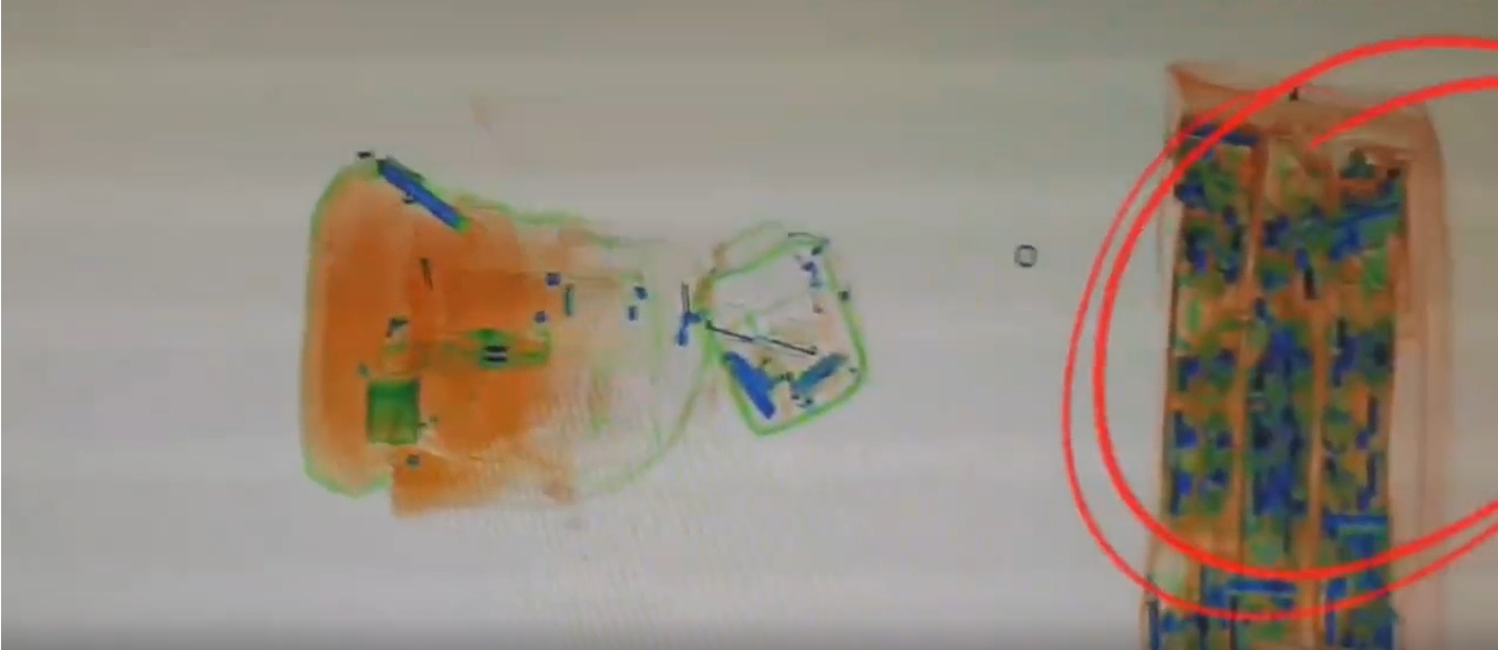 某日,哈尔滨海关所属黑河海关关员在水运口岸对入境旅客及行李物品实施监管时,发现一名选择“无申报通道”通关的旅客行李机检图像异常,现场关员随即进行拦截并开箱检查。