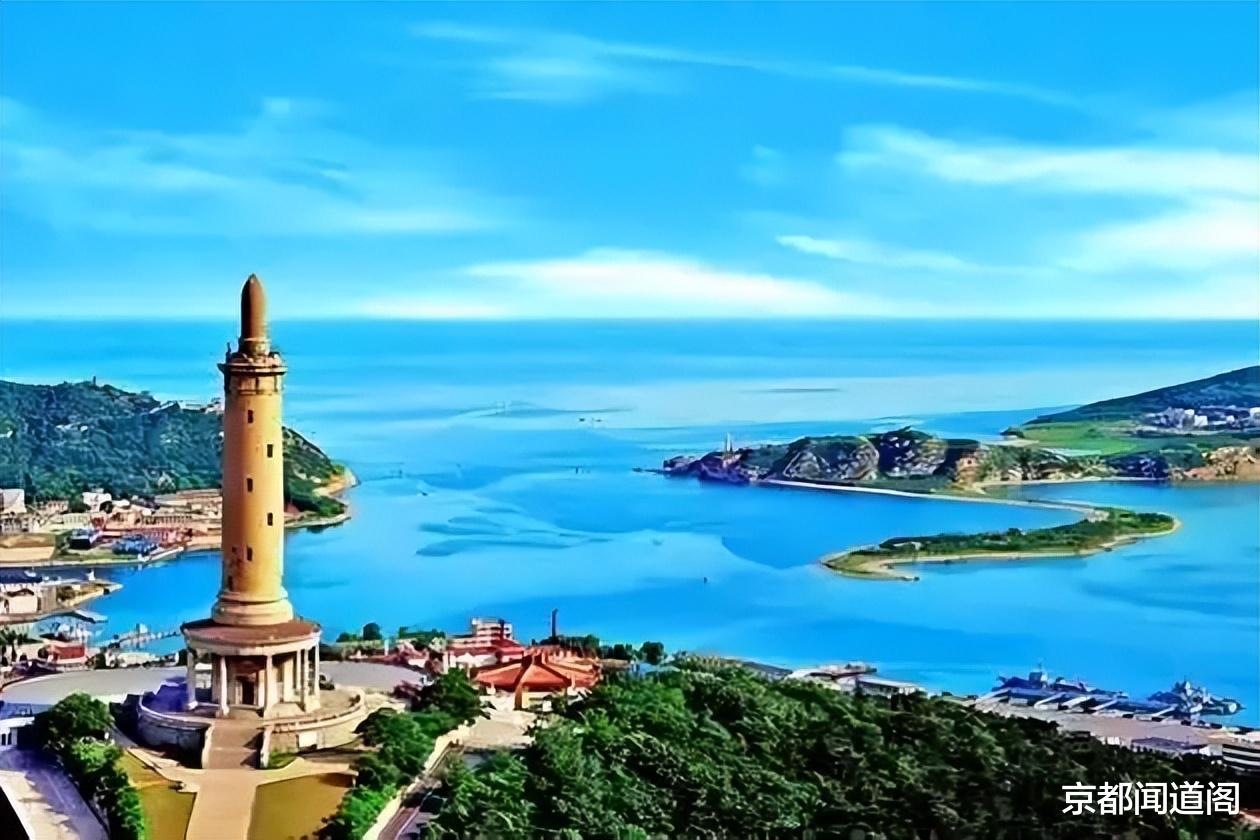 山的雄姿。旅顺口带有"山"的地名有十多个:黄金山、白银山、白玉山、老铁山……"金银玉铁",似四柱擎天。其中老铁山为群山之首,海拔466米。它像一块巨大的磁铁,每年吸引着10万多只南来北往的鸟到这里停歇。它又像一把大铁剪将黄海和渤海一剪东西。黄金山海面宽阔碧蓝,海滩金沙如毯,似"黄金海岸"。白玉山上白塔夺目,酷似一支玉烛耸天而立。