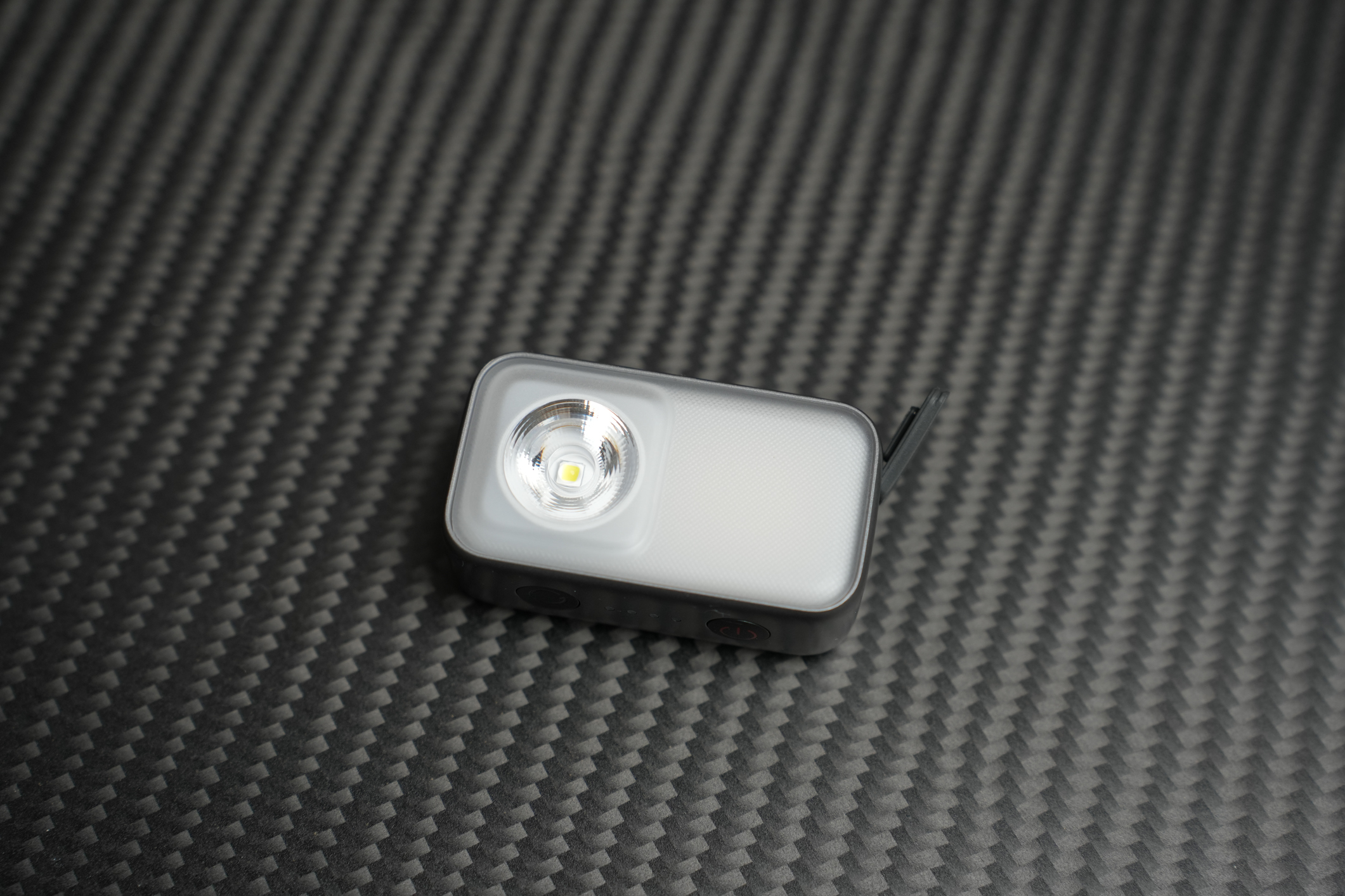 灯体设计简洁直观,正面是大面积 LED 灯珠面板,背面配备防滑硅胶握把,方便手持或悬挂,顶部设有隐藏式提手和挂钩,可直接挂在帐篷顶、树枝或墙壁上,满足多角度照明需求。操作区集中在灯体侧面,仅两枚按键:电源键负责开关机和切换模式,功能键控制爆闪、SOS 等特殊模式,逻辑清晰,老人小孩也能快速上手。IPX6 级防水加持,暴雨天气户外使用、意外溅水或冲洗清洁都无需担心,耐用性拉满。