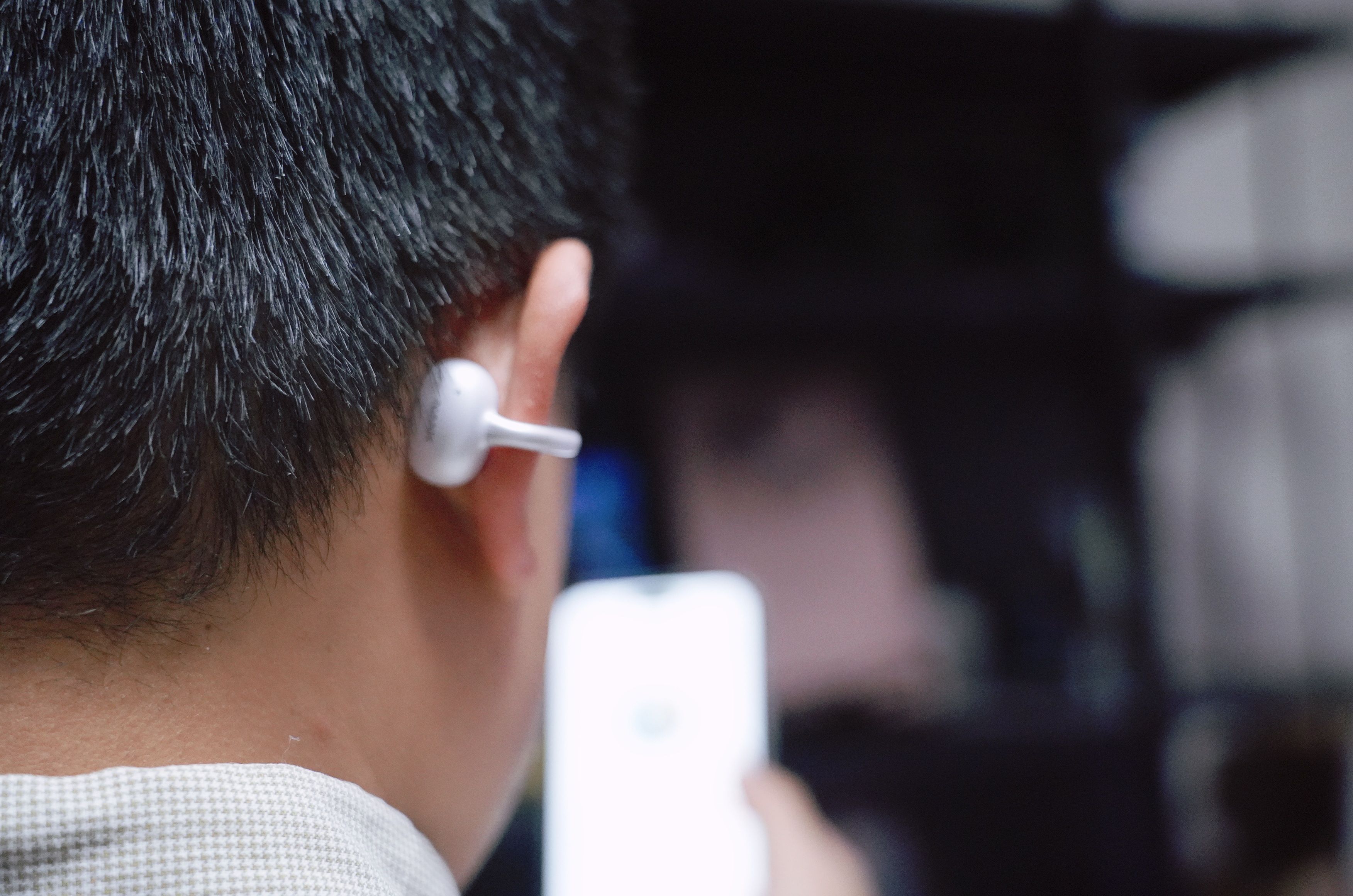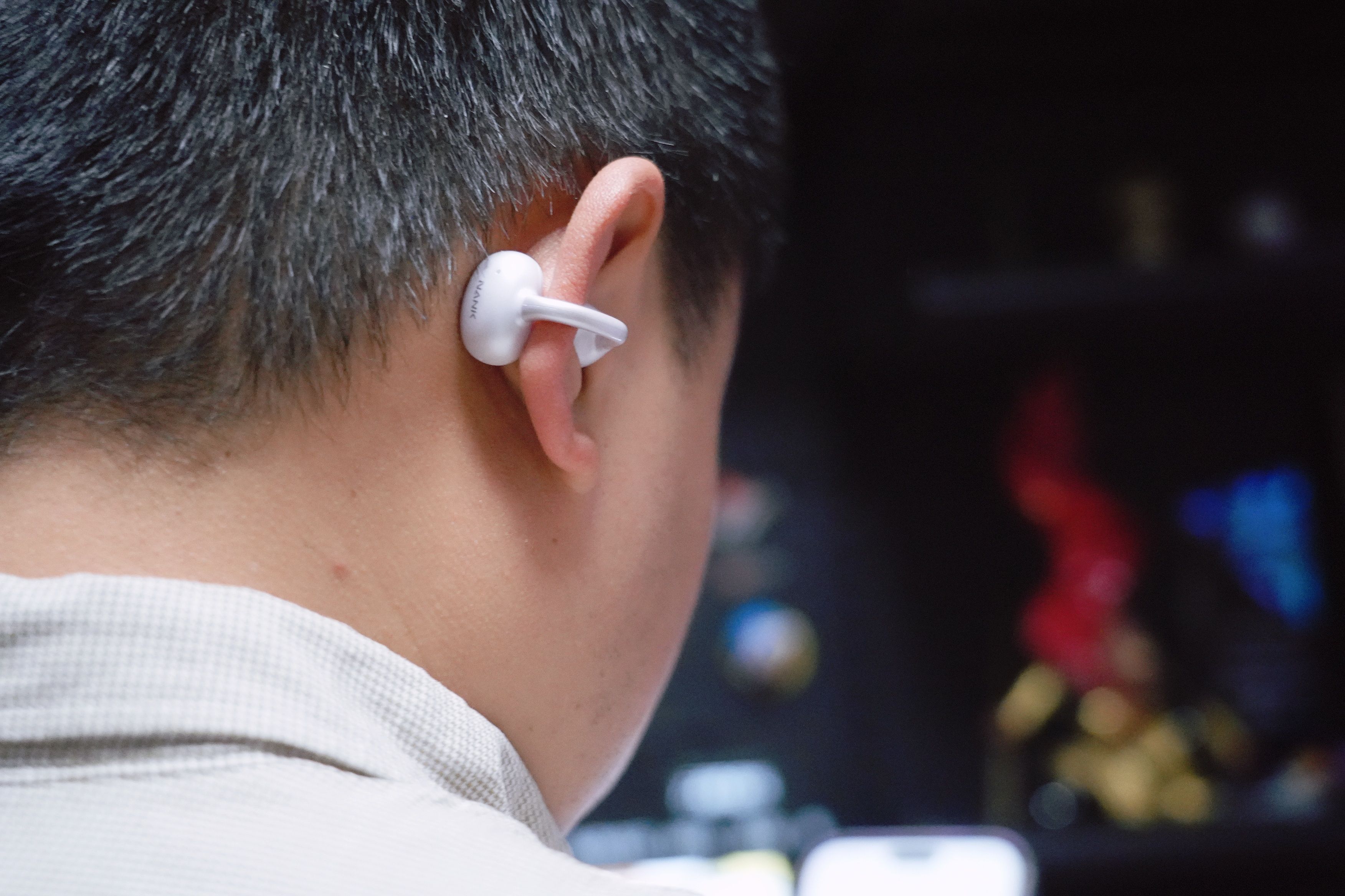 佩戴感绝对是它的王牌,这也是我最在意的点。它的耳夹设计很特别,不是那种硬邦邦的塑料,外面裹着一层亲肤硅胶,贴在耳朵上软软的,而且曲线刚好贴合耳轮,戴上去几乎没感觉,就像浮在耳朵上一样。