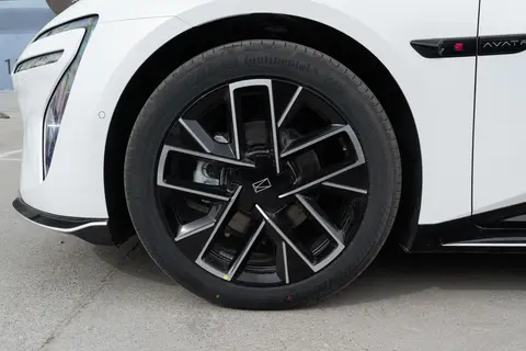 最后聊聊外观设计,现在很多新能源汽车的外观都比较相似,圆车头加贯穿式大灯的设计让人有些审美疲劳,但阿维塔 06 Elite 版的设计很有辨识度,充满未来感,很符合年轻人的审美。前脸的 F 型贯穿式大灯造型独特,日间行车灯采用三段式设计,点亮后像展开的翅膀,夜晚行驶时辨识度很高,老远就能认出这款车。大灯下方的进气口做了熏黑处理,搭配低趴的车头,营造出很强的运动感,不会给人软绵绵的感觉。