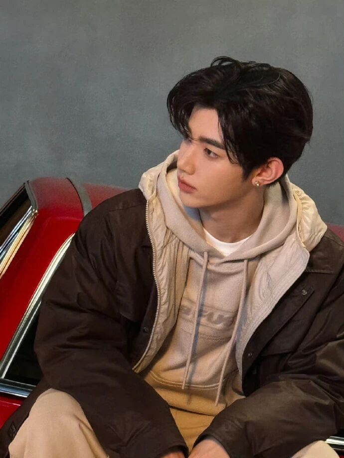 他的造型精髓,是把 “清瘦肩线 + 少年肌理” 当成潮牌穿搭的 “隐形标尺”: