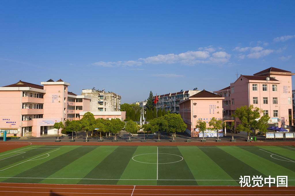 这是一所位于乡镇边缘的中学,校园不大,教学楼有些陈旧,操场上有学生正在上体育课。