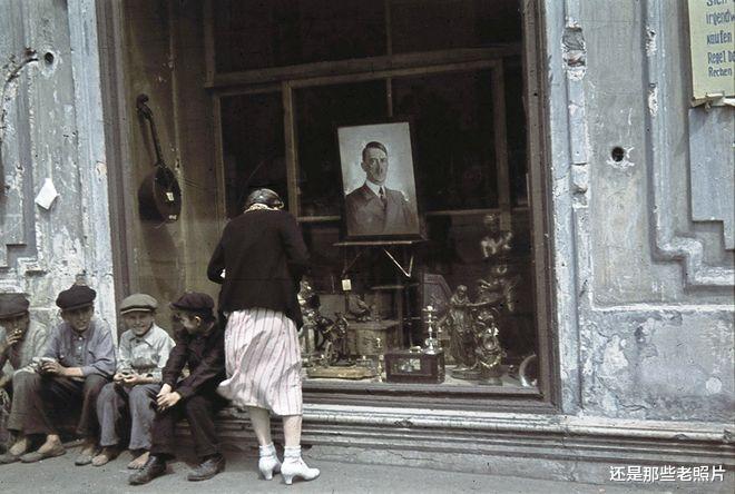 1941 年 10 月至 11 月,乌克兰哈尔科夫,阿道夫·希特勒的肖像挂在商店橱窗里。此时的乌克兰,已经被德国法西斯所占领。