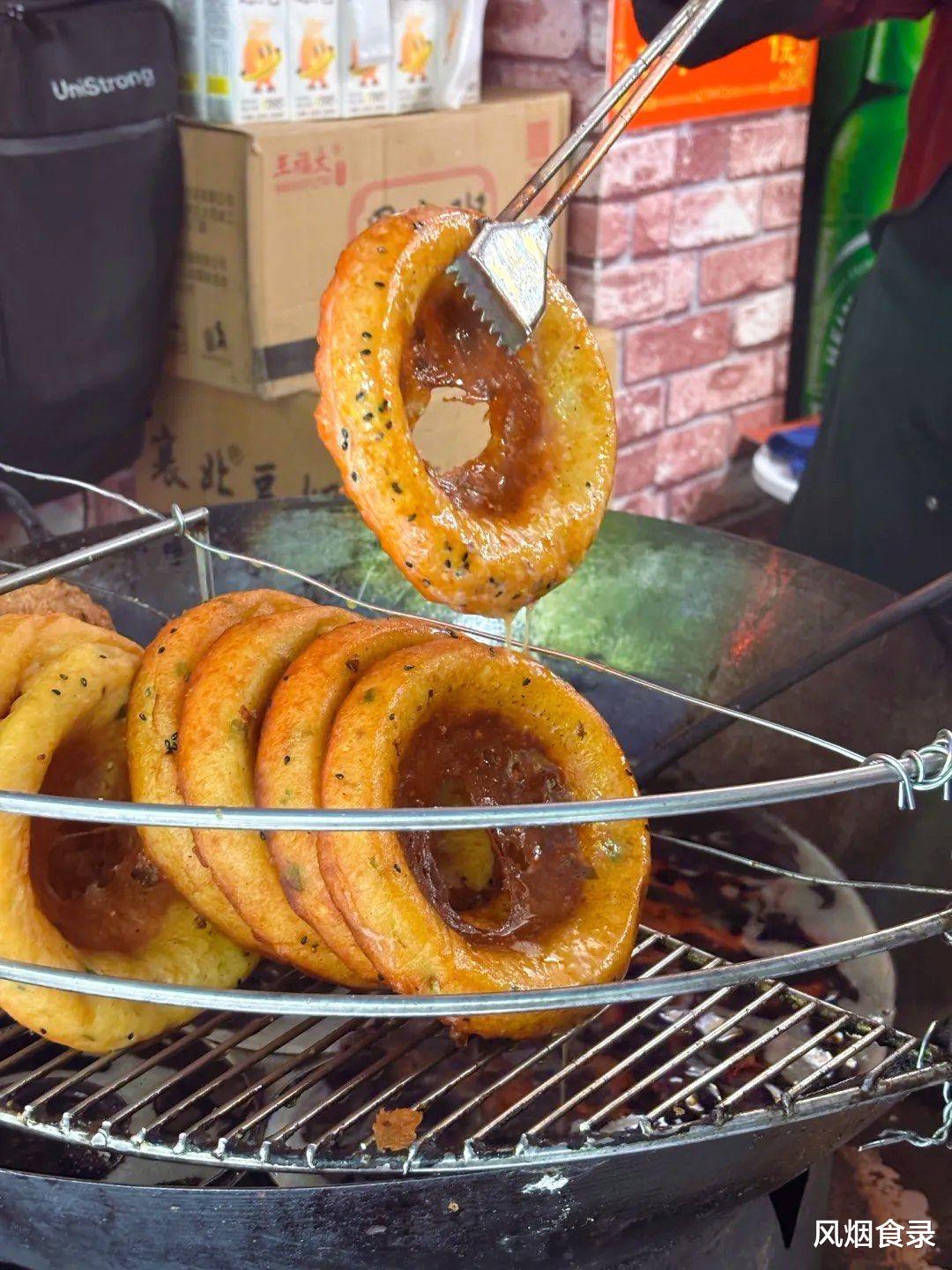 那会儿他卖烧饼亏得慌,索性拿米豆磨浆,用特制铁瓢炸出中间凹、四周凸的“窝”状,外脆里软,米香混着豆香,一咬“咔嚓”响,比烧饼香得多!