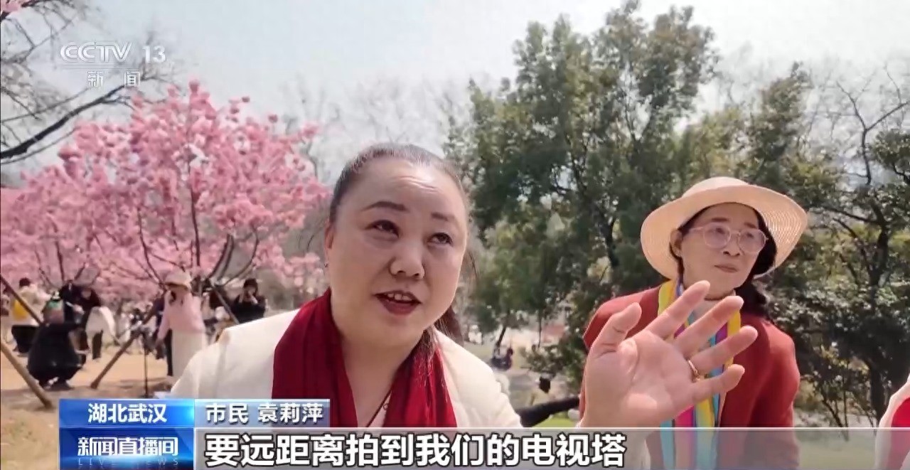 在武汉龟山公园,400余株早樱盛放。龟山电视塔、长江大桥等武汉地标与烂漫的樱花相映成趣。不少市民游客来到这里赏花、拍照。