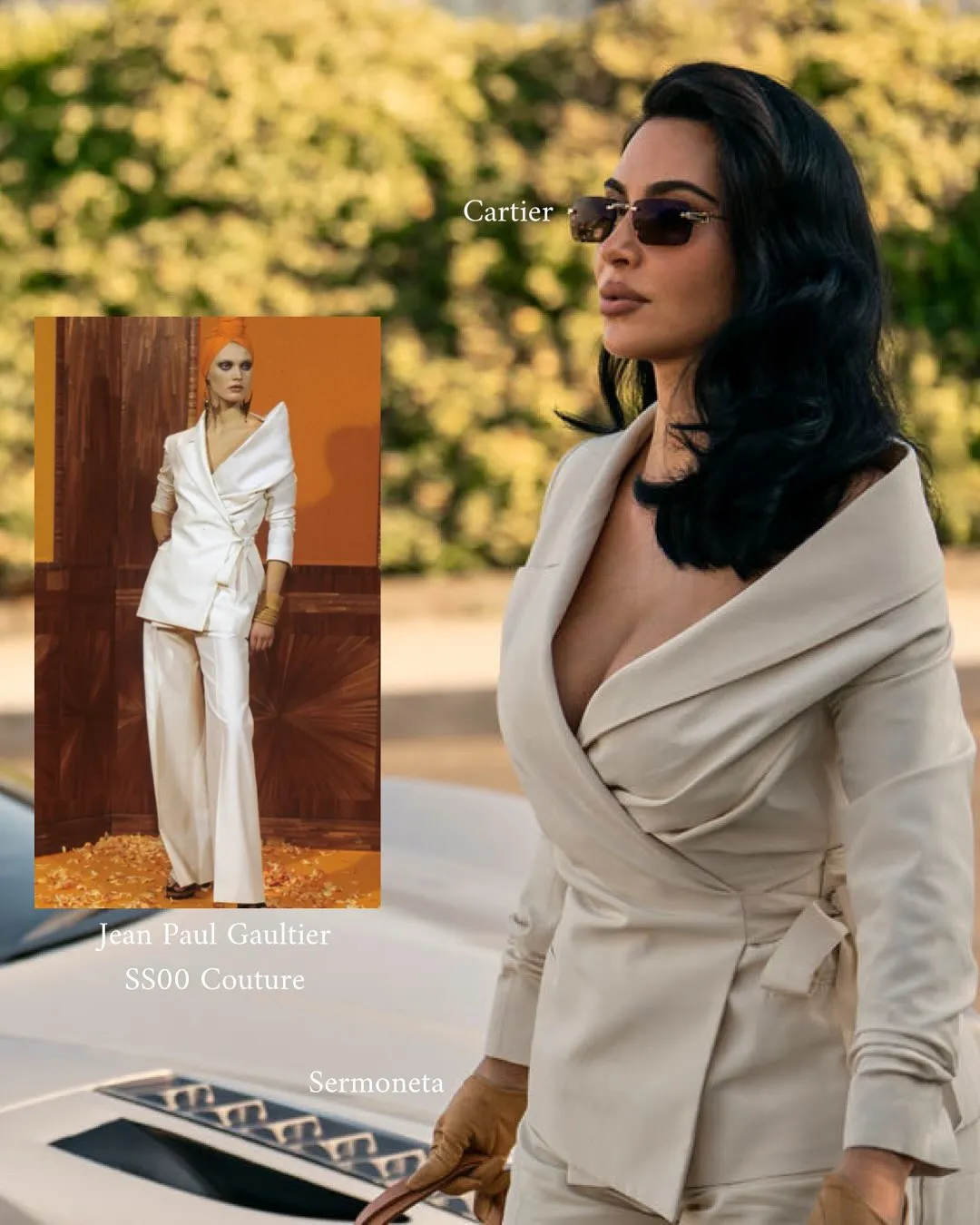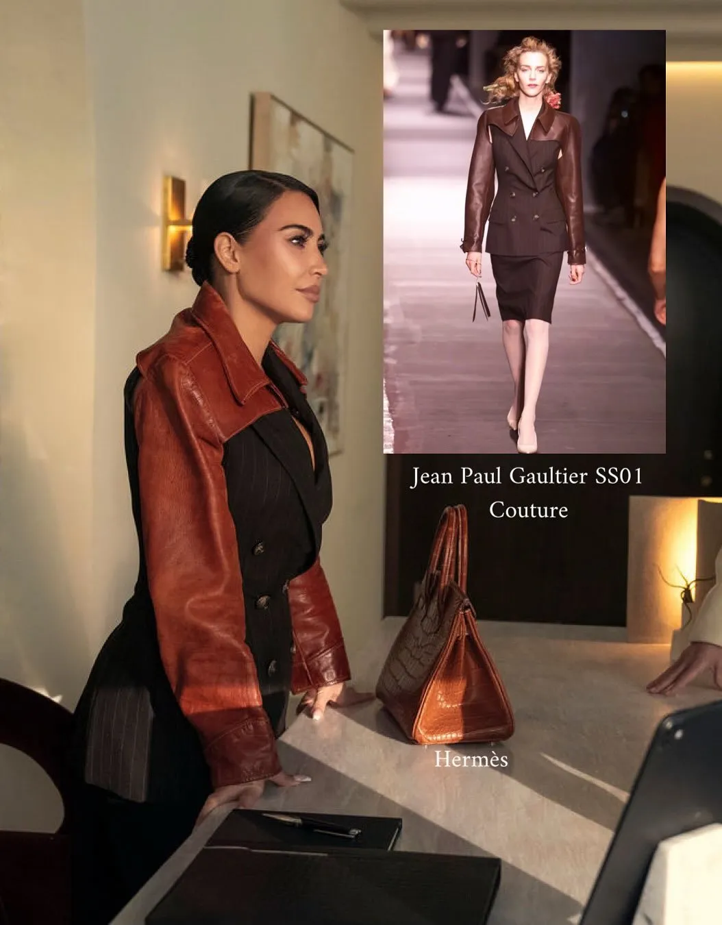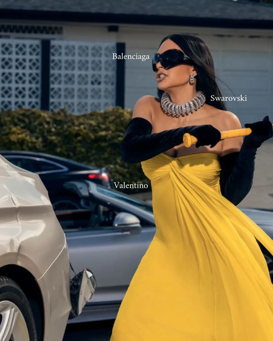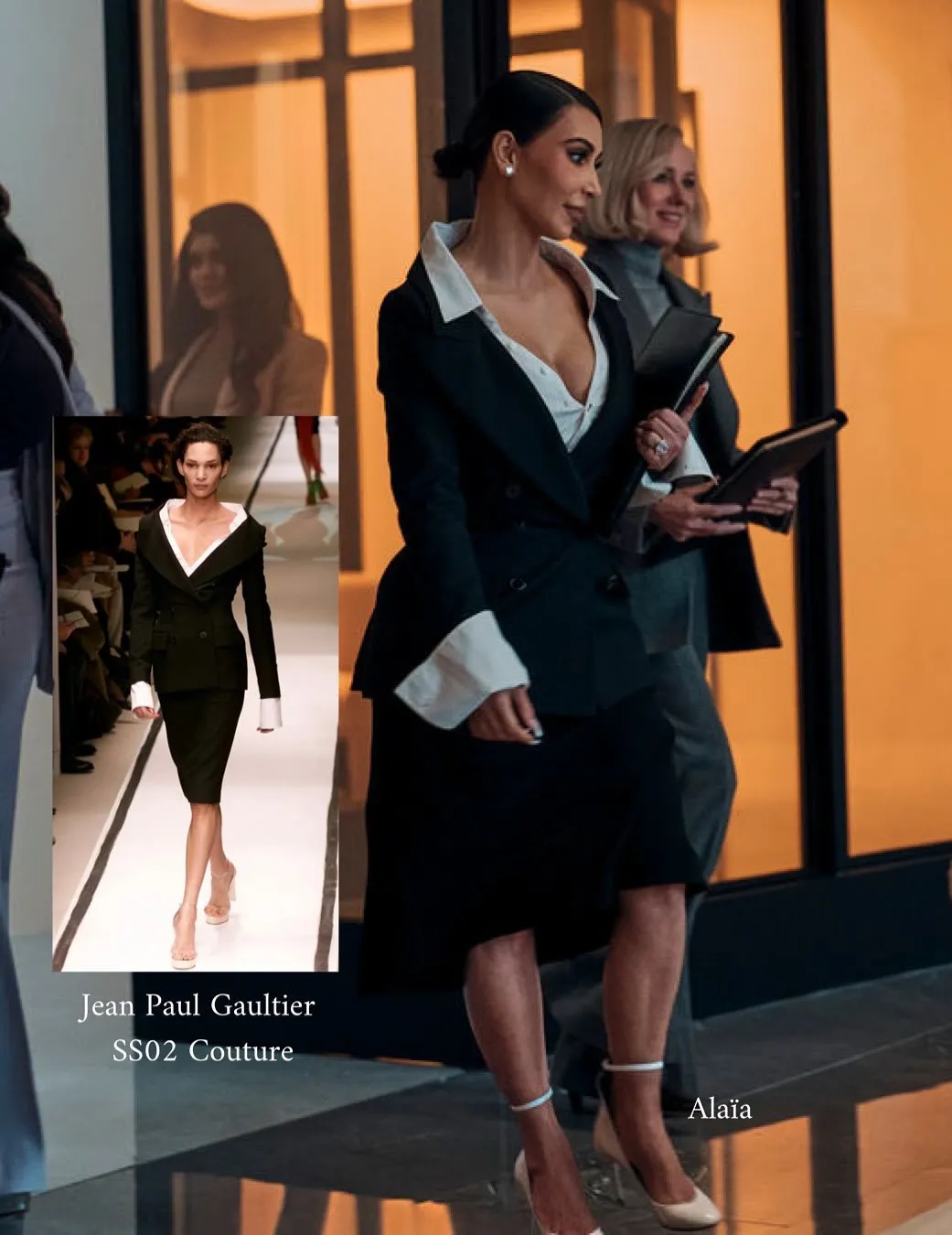 剧中造型非常亮眼——古着礼服、定制套装、高开衩长裙、亮片大衣、华丽耳饰、尖头高跟……几乎每一集都像拍杂志大片,卡戴珊甚至复刻了时尚史上最经典的碧昂斯穿着姜黄色长礼服砸车的名场面。