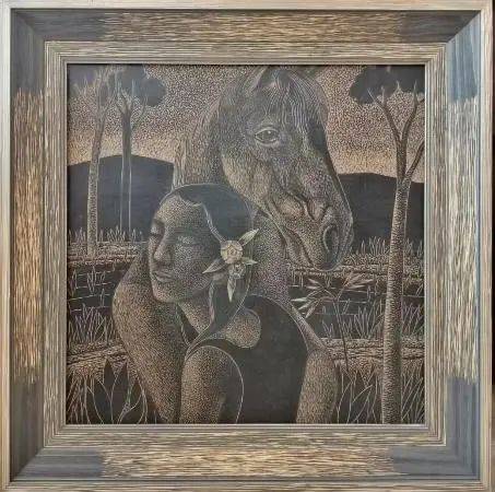 在艺术探索的道路上,姜永杰尝试过多种绘画形式,从油画到装饰画,最终与版画结下不解之缘。直到有一天,他偶然接触到版画,那一刻,他仿佛找到了心灵的归宿。“版画这种语言是非常直接的,一刀下去必须要到位,它和心是一致的,黑白的强烈对比穿插着那种碰撞的力量感,是我内心一种想要追寻的感觉。”姜永杰这样描述他对版画的热爱。在他眼中,刻版画时的节奏,就像战场上奔腾的战马,充满力量,姜玉杰说:“刻版画时的那种力量,那种节奏,就像战场上跑的那种战马,啪啪啪啪啪啪,