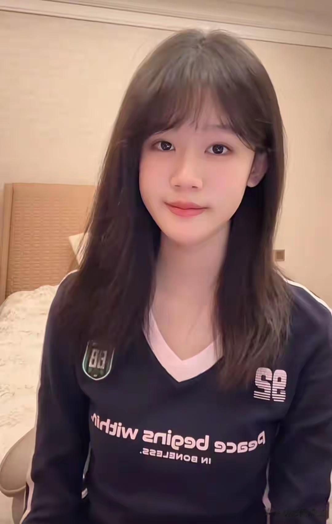 17岁的贝儿现在还在上高中,一身学生打扮,留着齐肩黑色长发,非常清纯青春有活力,笑起来眉眼弯弯非常治愈