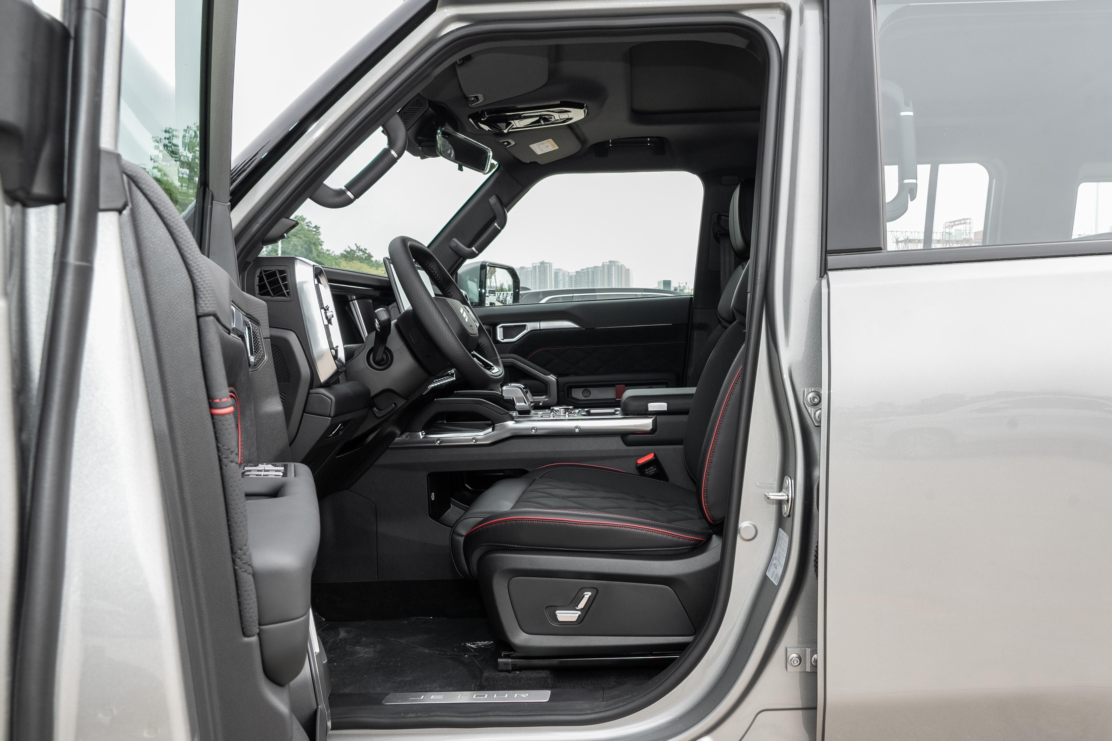 内饰采用了硬派矩阵布局,副驾位置配有激光金属雕刻面板,看起来非常有质感。车内的用料也很讲究,大量使用了皮质材料,摸起来柔软舒适,而且还很有档次。