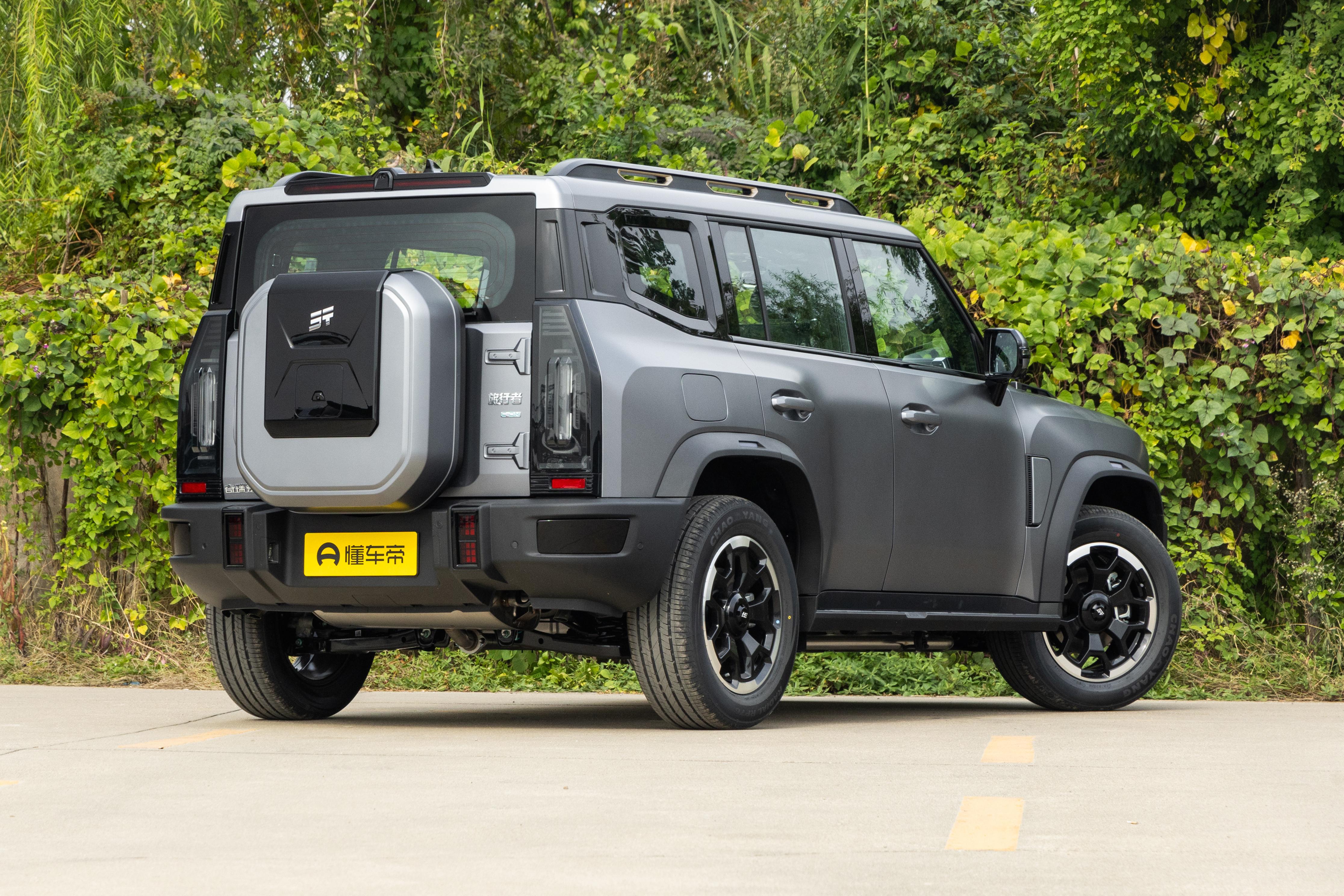 车尾部分的设计和车头相呼应,整体造型比较饱满。尾灯的风格较为大气,造型时尚动感,点亮之后辨识度极高。而且车尾还配备了外挂备胎、电吸尾门和拖车钩,不仅增加了车辆的实用性,还让整个车尾看起来更有越野的范儿。
