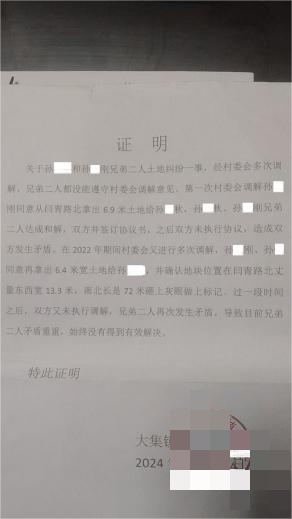 2022年前后,村委会先后组织两次调解:第一次调解中,孙某刚同意返还6.9米宽的土地,双方签订协议书后均未履行;后续村委会再次组织调解,孙某刚及相关方同意追加返还6.4米宽土地,并明确争议地块完整范围且以灰眼标记,最终调解结果仍未落实。