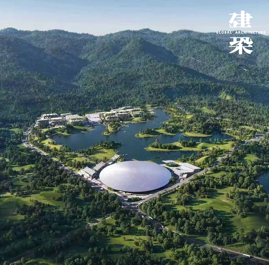 其中最引人注目的,是一座直径192米的UFO造型三级康复医院,其椭圆体网格外壳灵感源自太空飞碟,可有效调控夏季直射阳光,实现建筑消隐于自然的视觉效果。