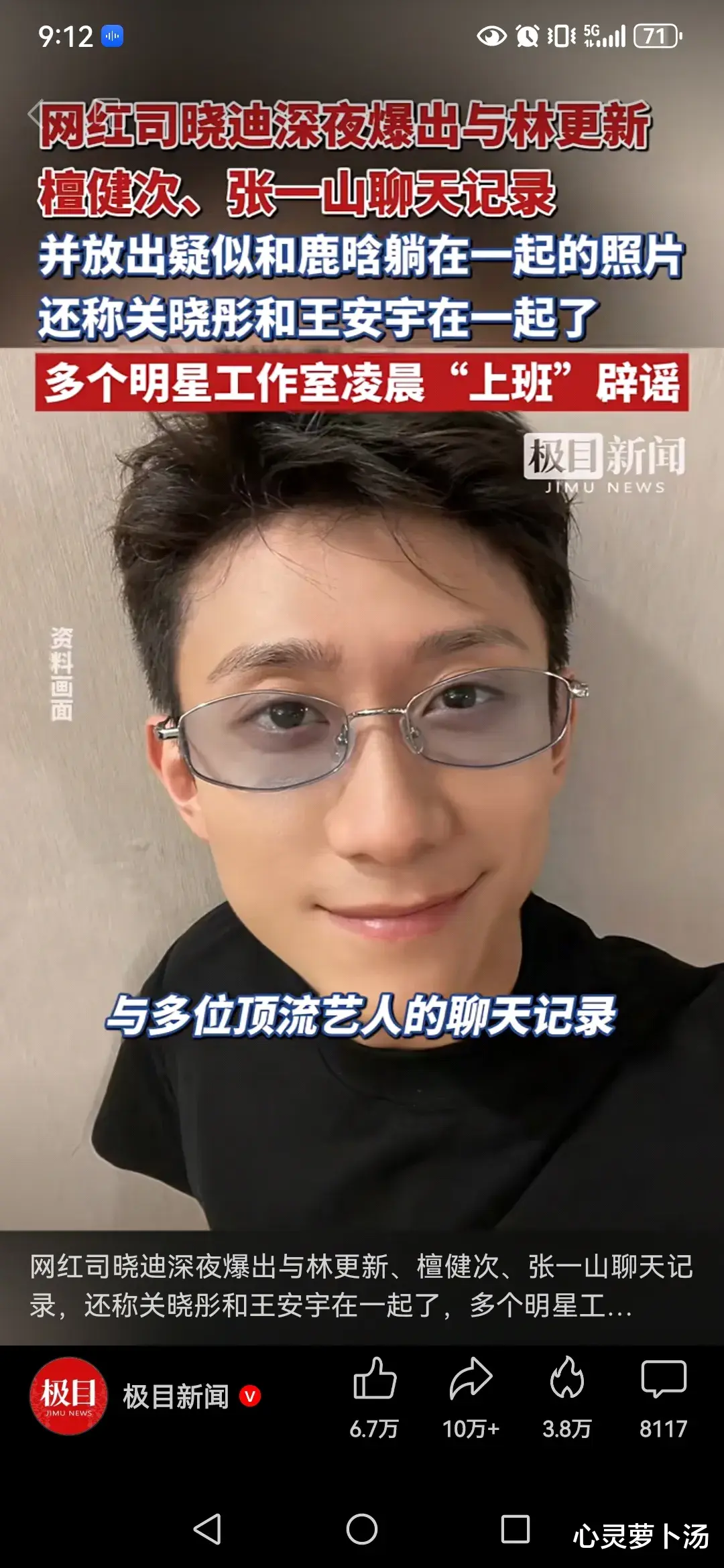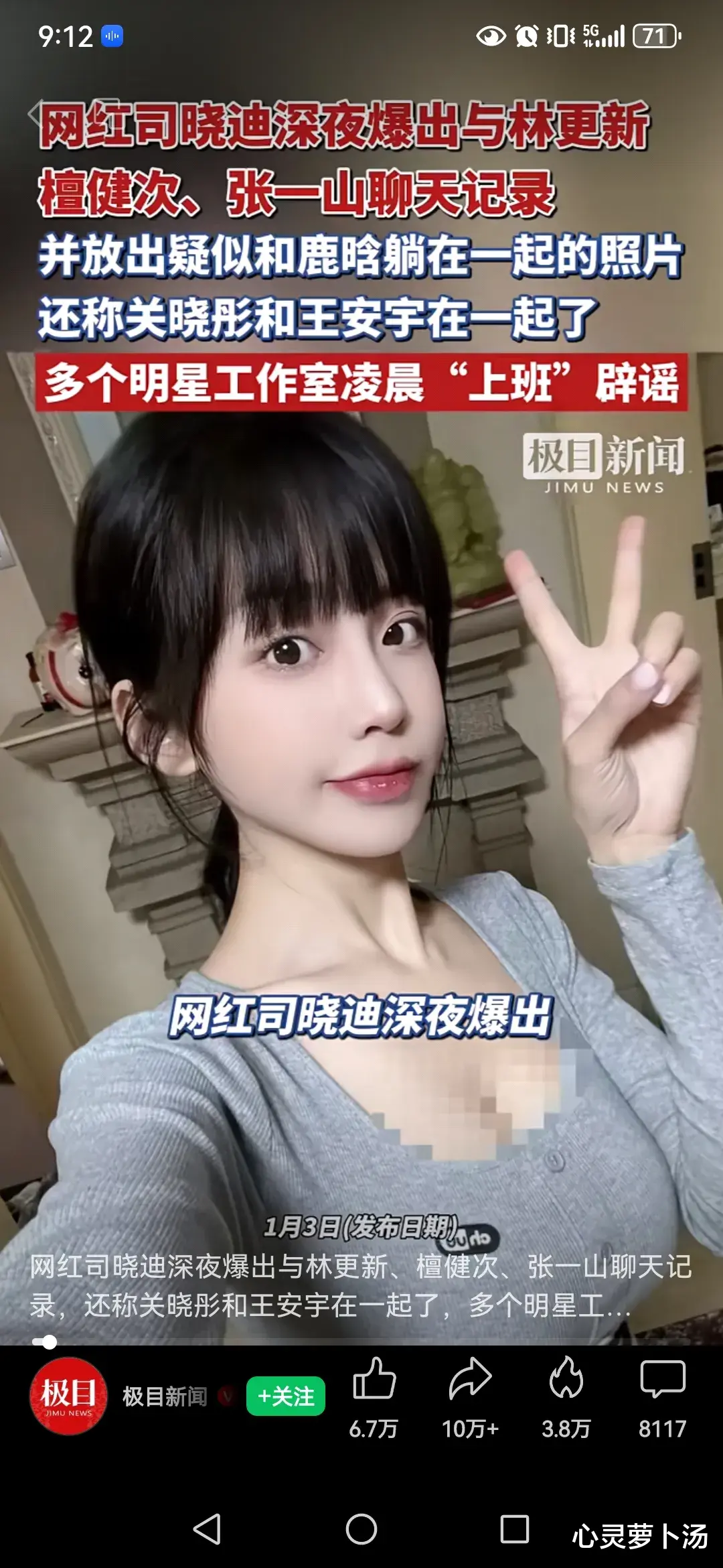 司晓迪这个名字,在2026年的第一个月,以一种近乎风暴的方式席卷了网络。一人单挑半个娱乐圈,将十几位顶流男星卷入漩涡,真假难辨的爆料、密集的律师函、全网的吃瓜狂欢,构成了开年最炸裂的“内娱地震”。热闹过后,喧嚣渐息,但这场风暴卷起的尘埃里,却沉淀着远比明星绯闻更值得普通人看清的人性逻辑与生存智慧。今天,我们不谈八卦,只聊事件折射出的、与你我息息相关的现实课题。