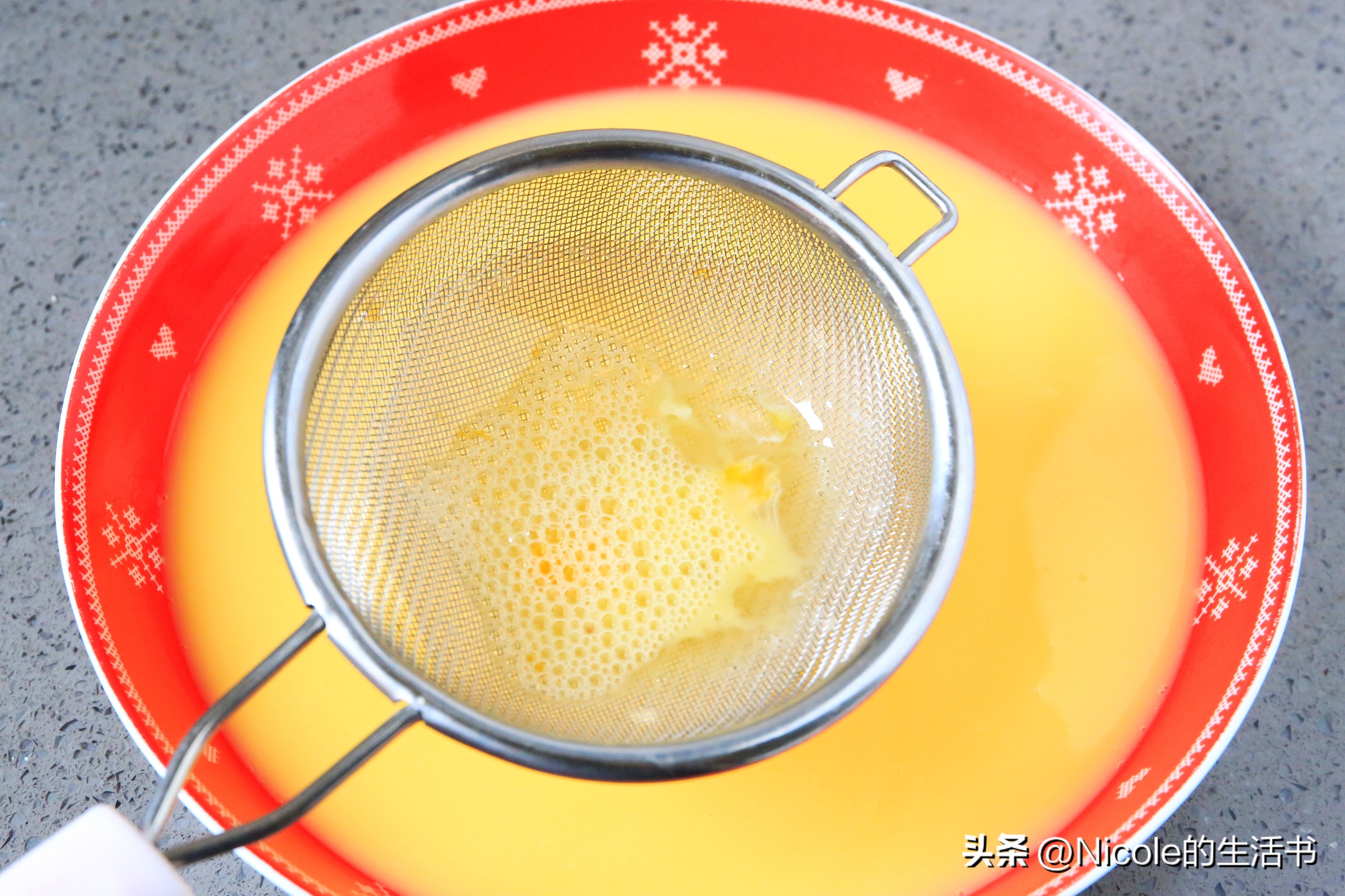 要做出滑嫩平整的蛋羹,有点需要注意:第一,搅散蛋液要用热水,这样才能让蛋羹平滑;第二,蛋液与水的比例大概要1:2.5,这样才能让蛋羹水嫩。如果追求完美,还可以将蛋液过筛,过筛后的蛋液细腻无泡,蒸出来的蛋羹更如镜面般光滑,颤巍巍的,透着一股子温润的光泽。