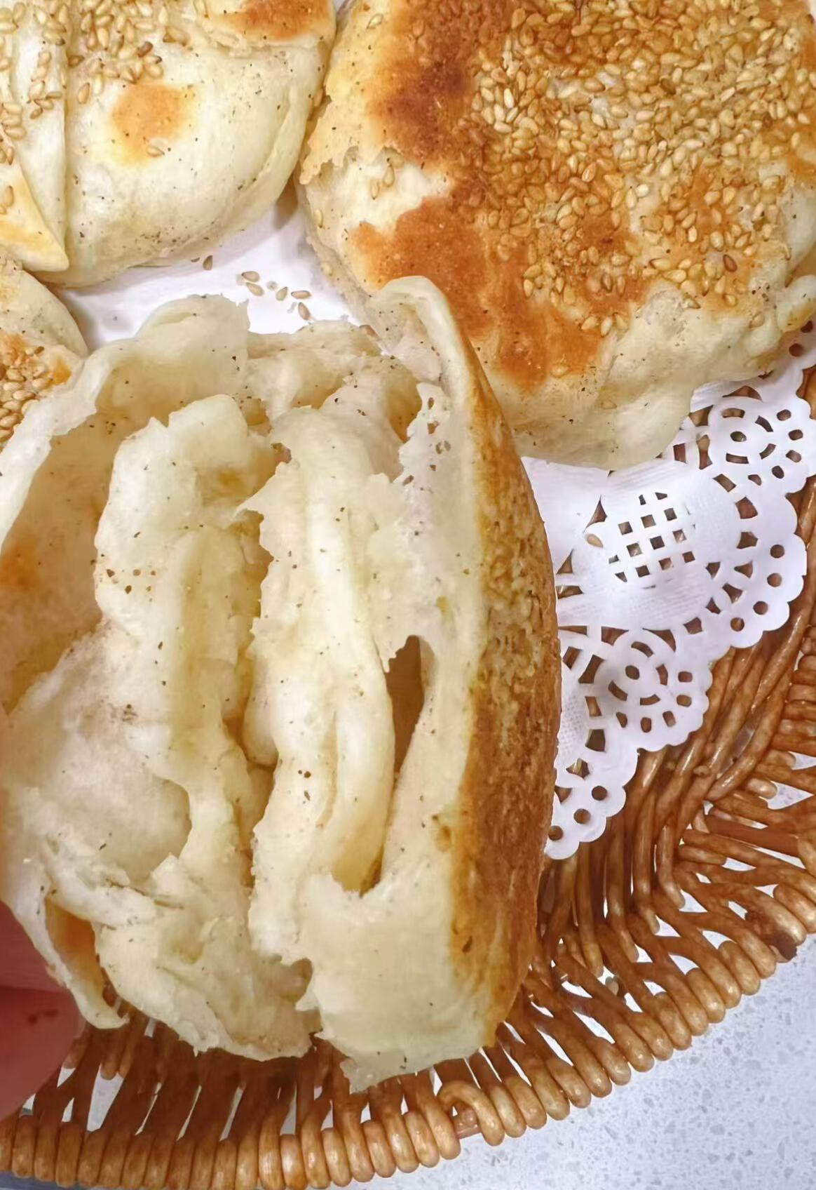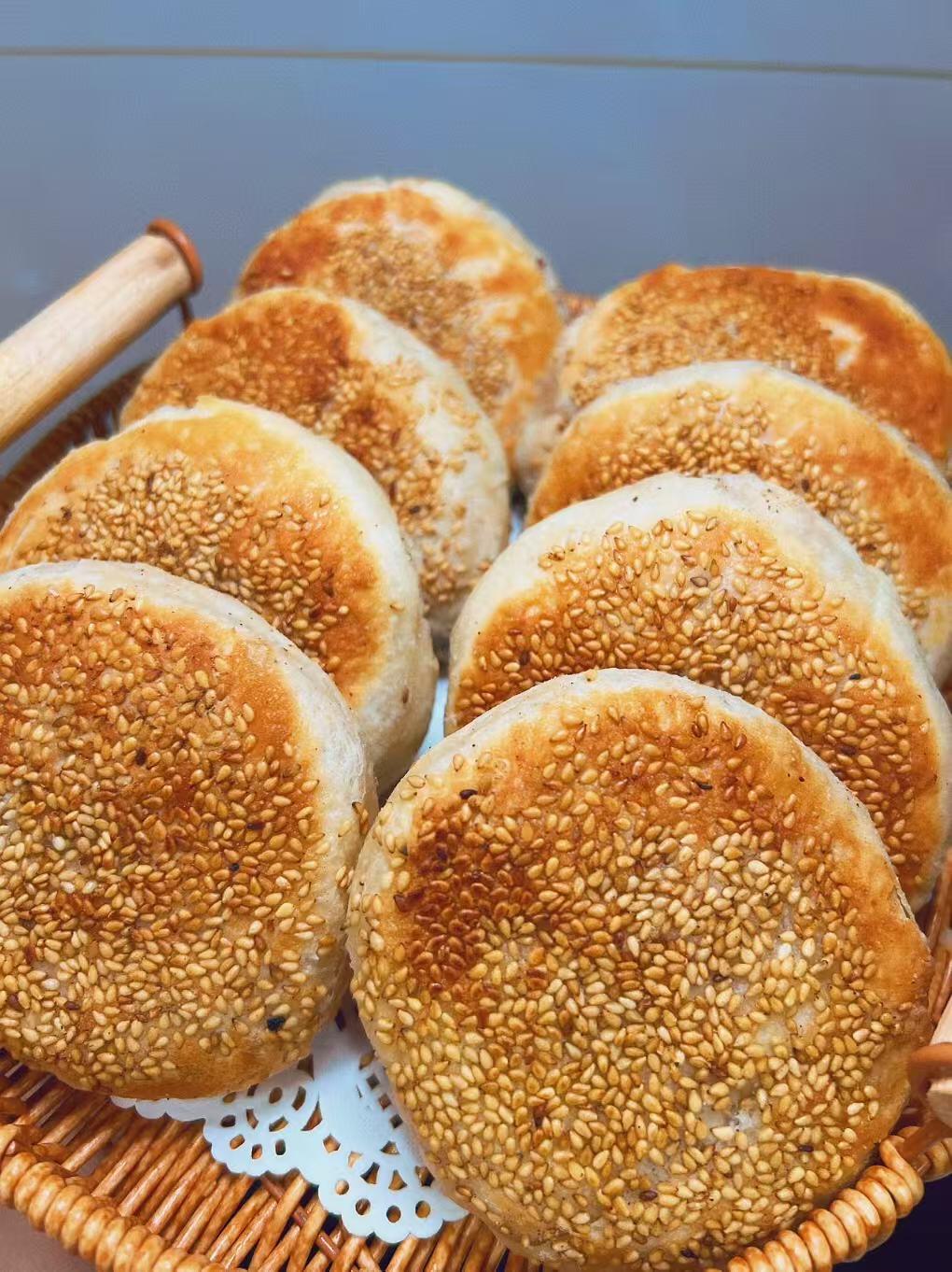 现在就揉面团、做油酥,1小时后就能拥有一篮金黄酥脆的芝麻烧饼。记得煎的时候多刷点油,香味能飘满整个厨房。