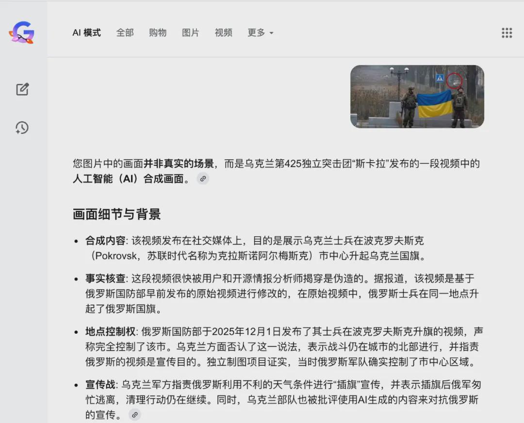 接下来看看谷歌AI是如何评价乌军公布的这张AI照片。