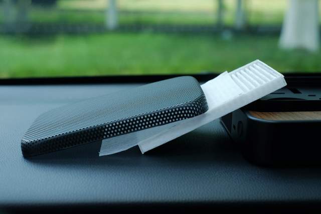 揭开初效滤网,下方是HEPA复合滤网,它是H12级HEPA滤网+高碘值活性炭层组合而成,可以有效吸附焦油、去除车内甲醛等有害物质!加上净化BOX的等离子杀菌技术,可以快速的去味和杀菌!让车内空气始终健康清新!