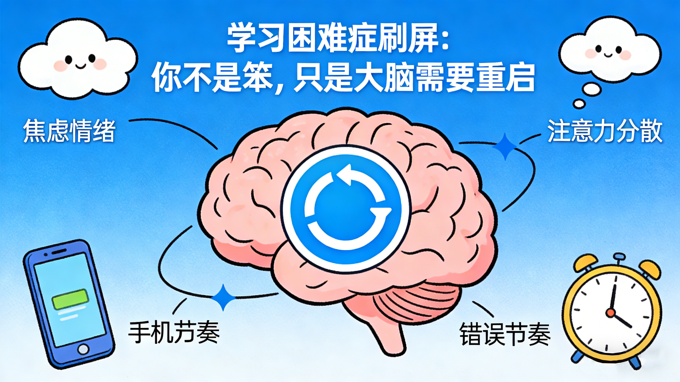 其实,很多人所谓的“学习困难症”,并不是智商不足,而是大脑被情绪焦虑、注意力分散、错误节奏这三大“病毒”入侵,导致学习状态“宕机”。今天,我们就来精准“诊断”这些问题,并给出可直接落地的“修复方案”,帮你重启高效学习状态。