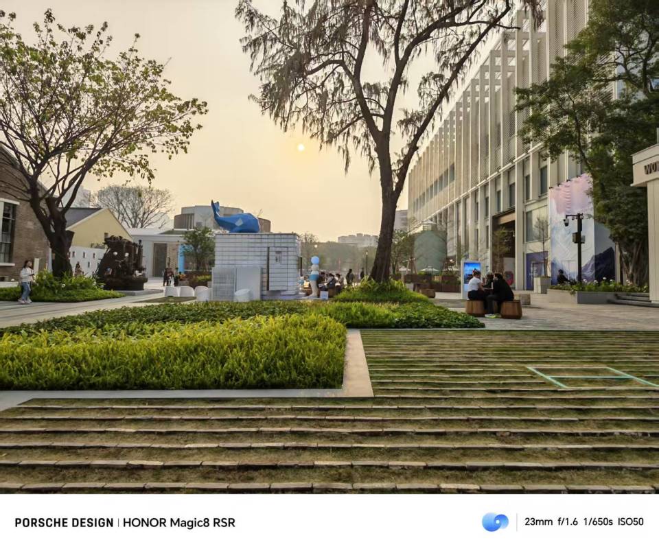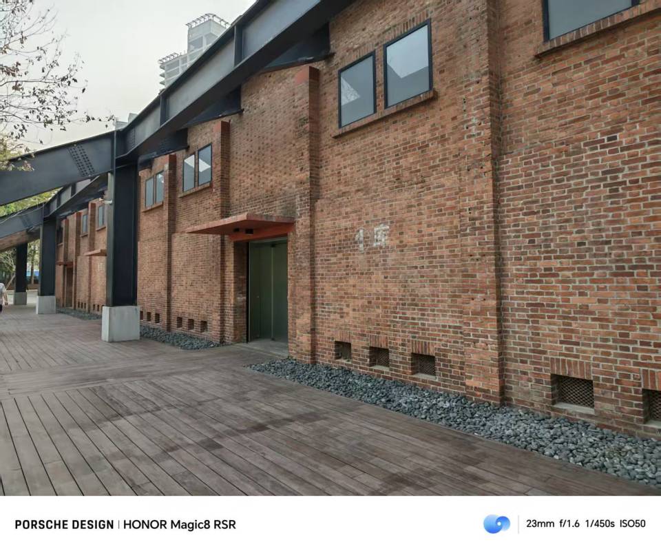 在日间的成像中,荣耀Magic8 RSR保时捷设计这颗主摄提供了不错的解析力,样张中的砖墙其实是比较考验细节的场景。这颗1/1.3英寸传感器,无论是墙砖的还原,还是远处楼房的细节,都还原得比较准确。