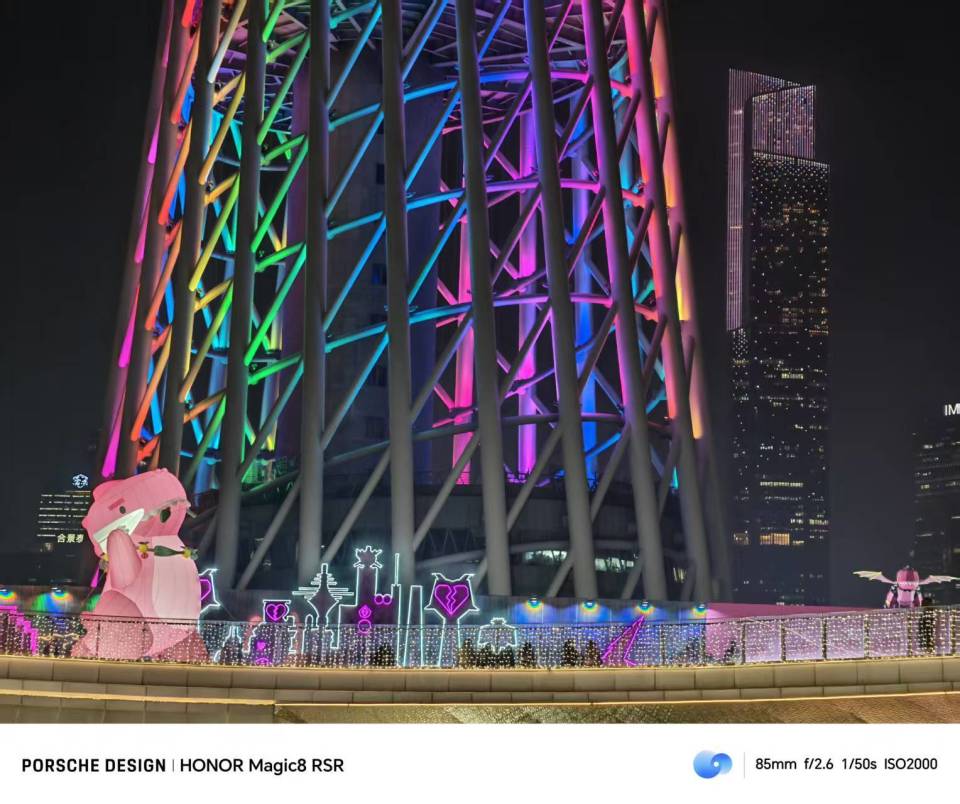 来到夜景,这颗两亿像素长焦、配合F2.6的超大光圈,对于复杂光线下的建筑物和装饰物都有不错的还原,且细节非常丰富。