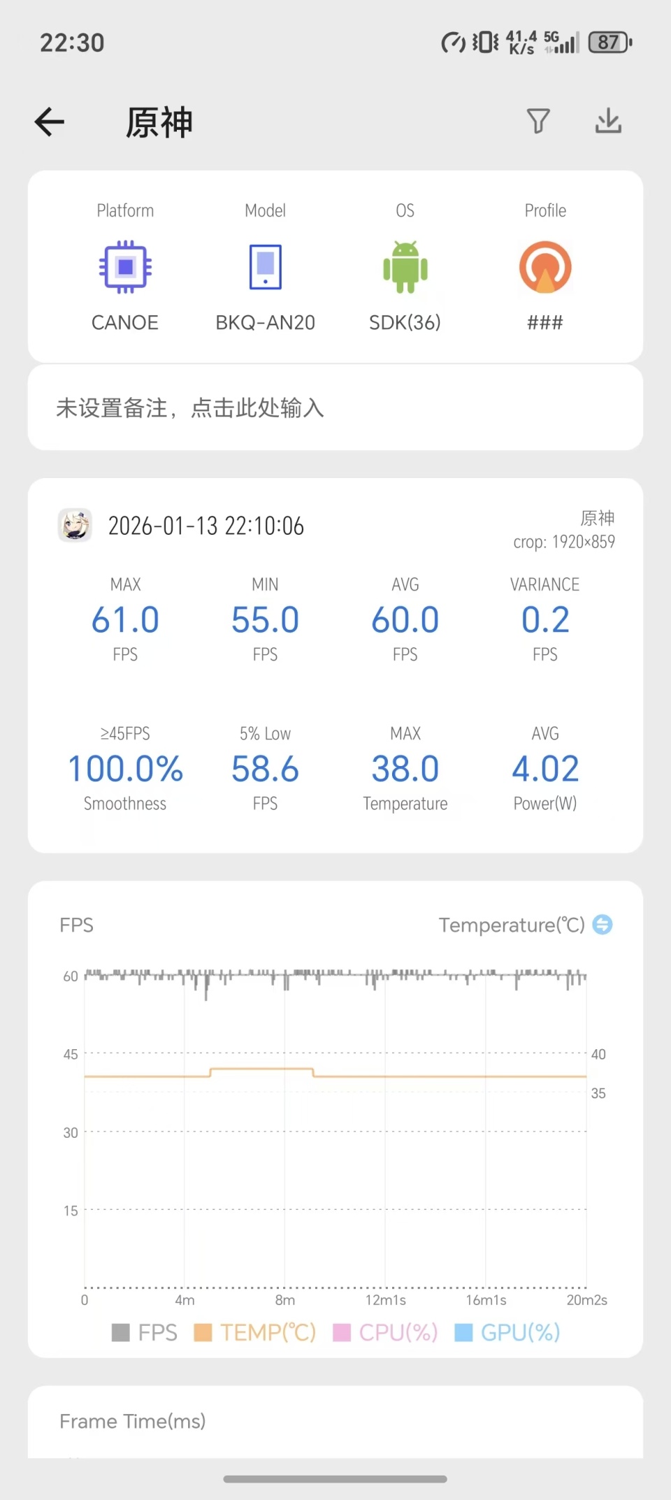 来到难度更高的《原神》,荣耀Magic8 RSR保时捷设计在长达25分钟的跑图、战斗中,基本都能稳定在60帧,偶尔会下落到57-59帧,但也很快回到60帧。整体发热情况也尚可,发热集中在机身上半部分,热量均匀分布在背板和边框上,没有过于烫手。不过,官方赠送的手机壳没有包住中框,加上金属材料,摸起来可能会感觉有一点过热,但实际表现其实还算稳定。