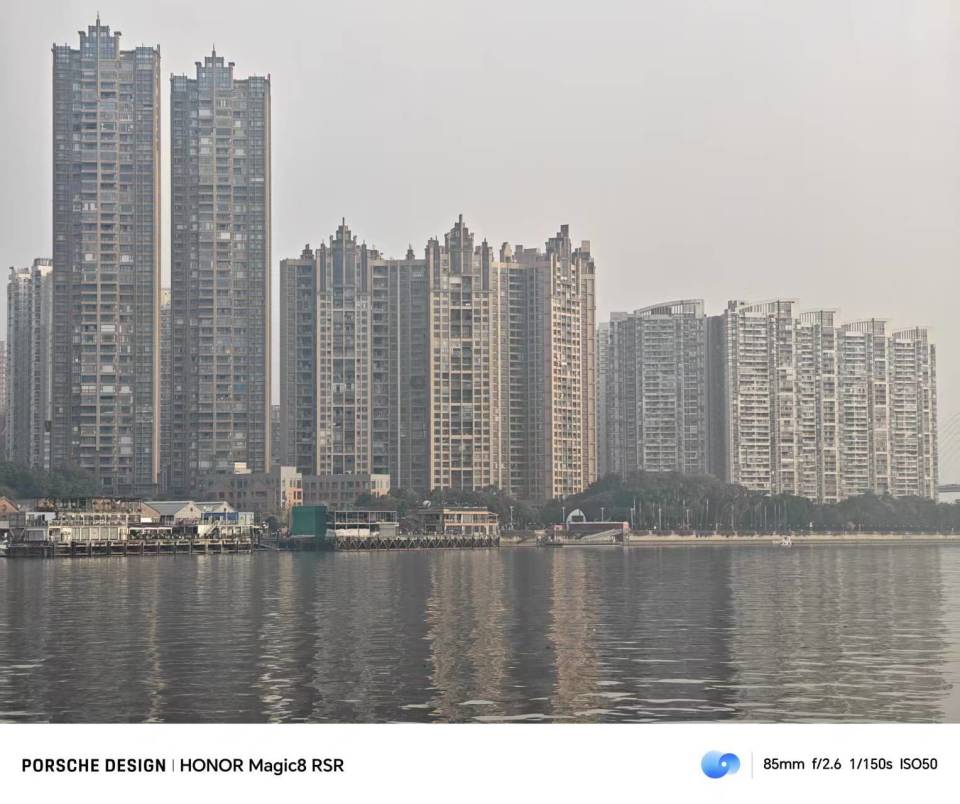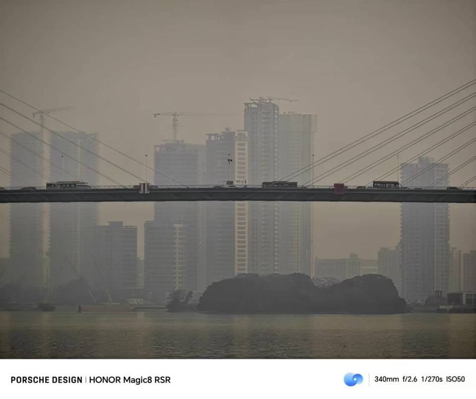 来到长焦的部分,荣耀Magic8 RSR保时捷设计选择的依然是我们的老朋友HP9,这颗两亿像素潜望式长焦,解析力还是一如既往强悍。远处的高楼大厦,每一层楼、每一个玻璃窗,细节都被保留下来,只可惜拍摄当天天气并不算特别好,一些雾霾影响了它的发挥。