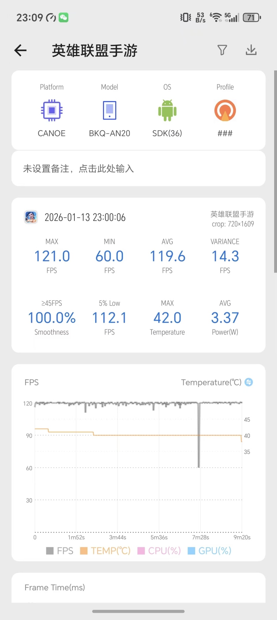 在《英雄联盟手游》特殊模式符文大乱斗中,荣耀Magic8 RSR保时捷设计全程能够稳定在120帧。玩过这个模式的朋友应该都知道,相比起普通大乱斗或5v5对局,这个模式特效更多,也更容易出现卡顿情况。在游戏后半程,突然出现的一个弹窗把帧率掉到60帧,但后续很快又回到120帧,即便是团战也能保持稳定,表现还是很不错的。