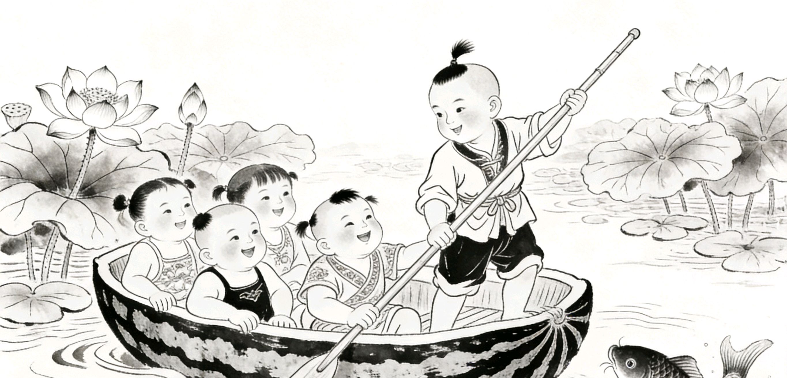 有人说,那瓜皮舟原是太湖龙女的玩具,因见小乞丐可怜,这才化作瓜皮,带孩子们去太湖游玩了一番。也有人说,这世间的奇遇,原是留给心地纯净的孩童的。
