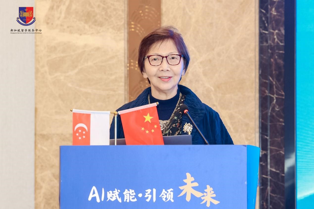 南洋理工大学原副校长、校董连萧思女士发表了主旨演讲,分享了对教育创新的深刻而独到见解。她表示,教育服务的创新不仅依赖科技手段,还应结合人文关怀与国际化视野,推动教育的全面发展。