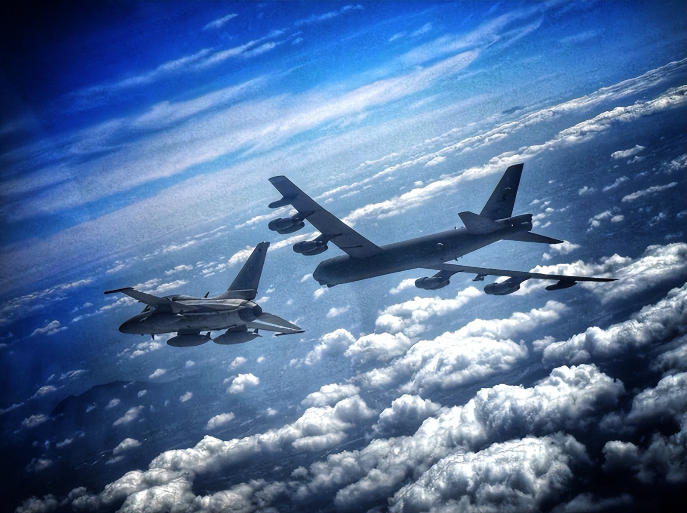 这次出动的 B-52H 战略轰炸机,是美国空军的战略轰炸主力,这款轰炸机不仅能执行常规轰炸任务,还可以搭载核武器和远程巡航导弹,威慑力十足,美国特意从关岛远程部署这款战机到南海搞演习,就是想向中国展示自己的军事力量,试图从气势上压制中国,同时也想向南海周边国家传递信号,彰显自己在亚太的存在感。