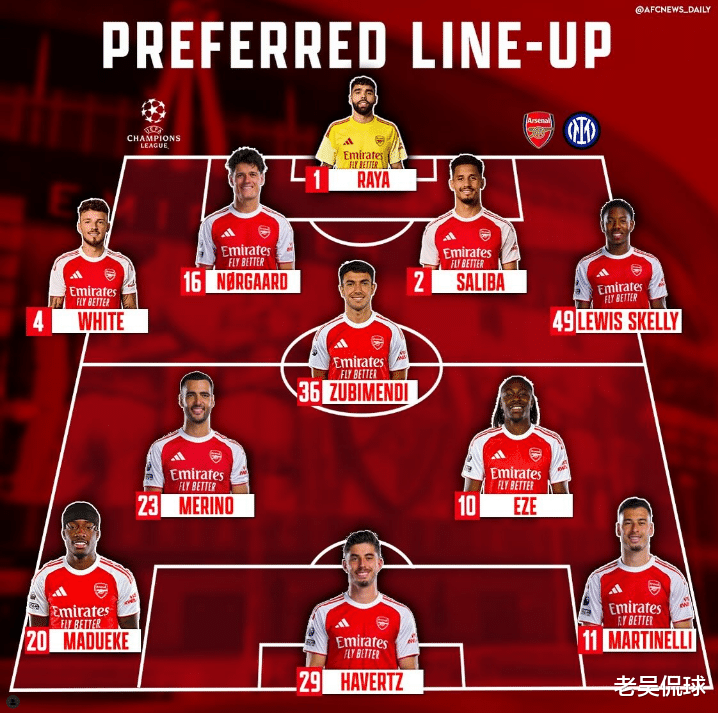 所以,即便今晚阿尔特塔派出英联杯的阵容出征我也毫不意外,最近球队的赛事太频密了,欧冠晋级已经毫无悬念,面对单线作战的曼联,今晚必须做出较大的轮换。如无意外,近期客串左后卫的廷贝尔会得到完整的休息,中场则会有埃泽、梅里诺领衔,至于搭配小将恩瓦内里还是防守悍将诺尔高其实无关痛痒。前锋线上马丁内利必然有一席之地,他在欧冠赛场的表现太出色了,已经连续5场欧冠都有进球,如果今晚能继续进球,他将取代内马尔成为第一位在欧冠联赛中连续6场比赛进球的巴西球员。而锋线另外两人,则有可能是热苏斯和马杜埃凯。乍一算,枪手今晚的轮换幅度恐怕将达到7人以上。