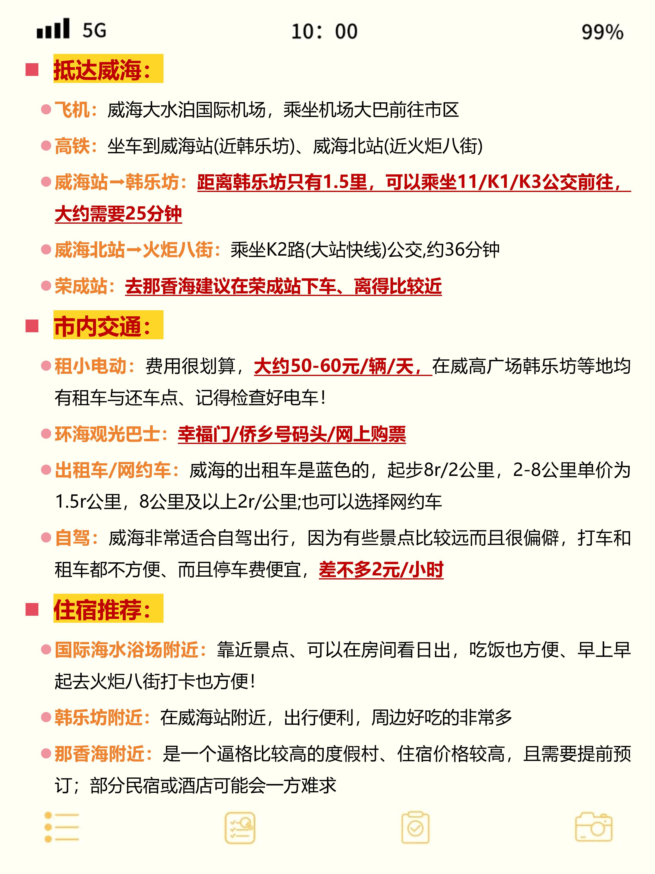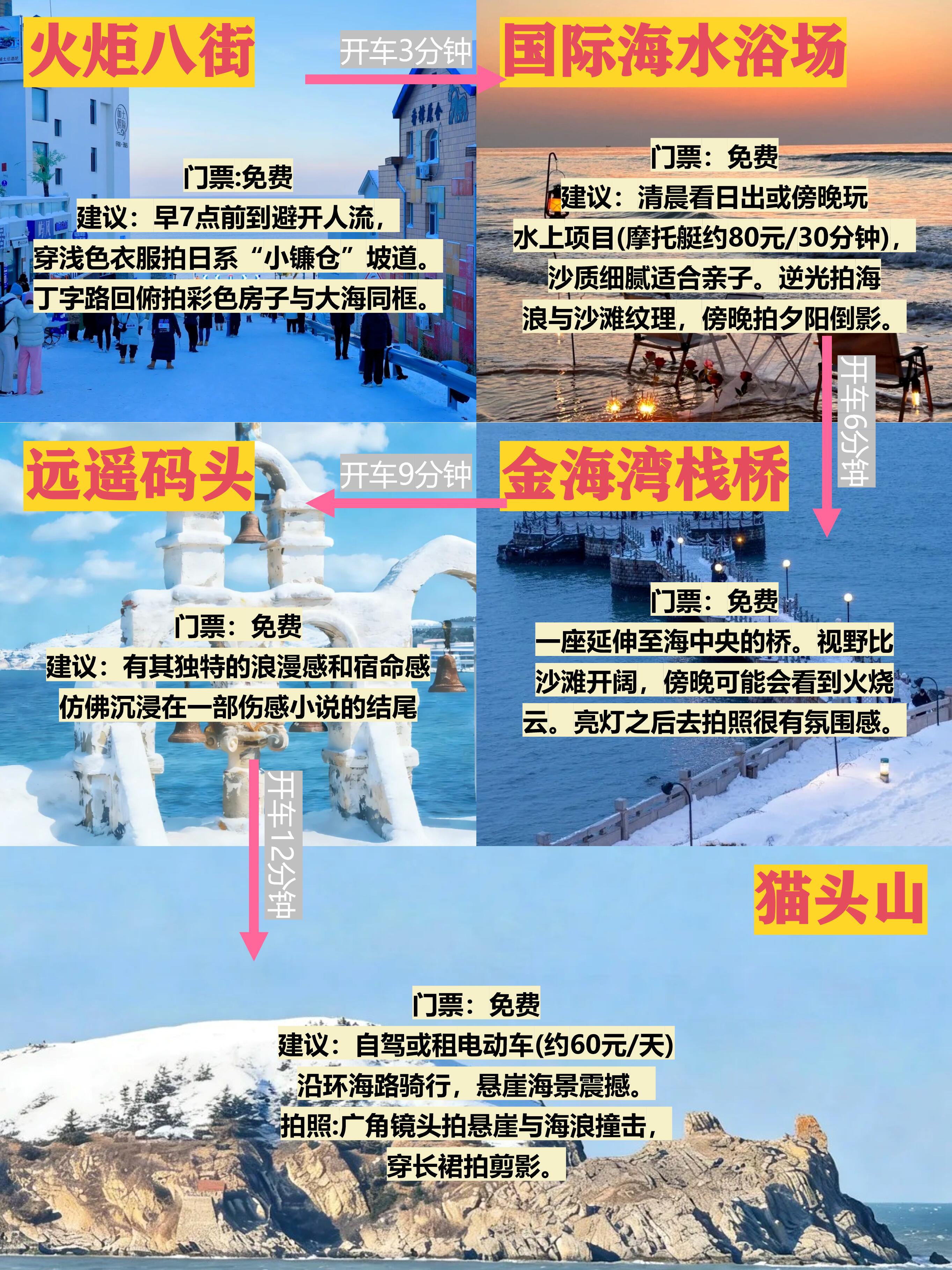 4.韩乐坊建议晚上去,白天部分店铺没有开门,不是很热闹5.部分景点门票提前线上购买,节省排队时间,鸡鸣岛、海驴岛也提前查好乘船班次